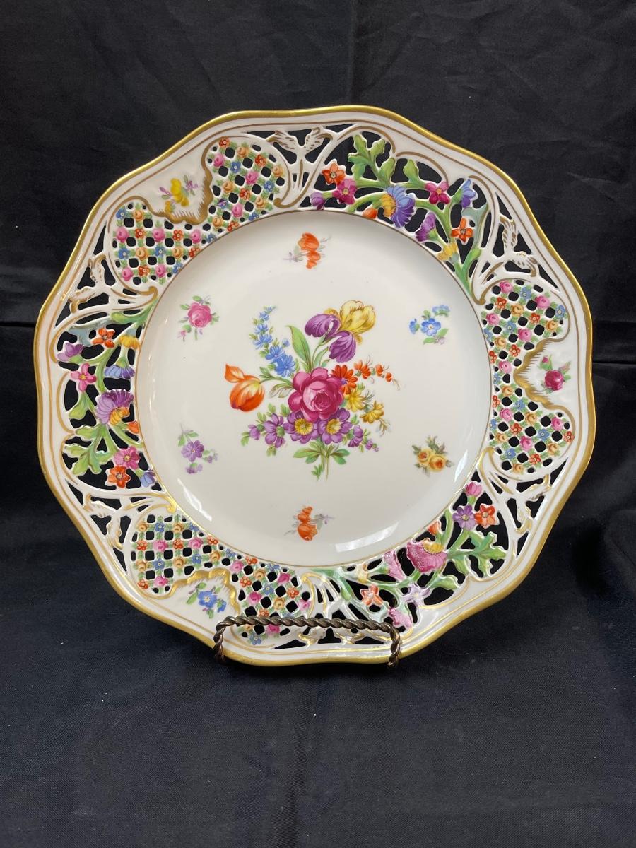 Vintage Lace Edge Floral Plate Porcelain China Dishware Schumann Bavaria US Zone Germany. In good condition. About 10" size, would display nicely.