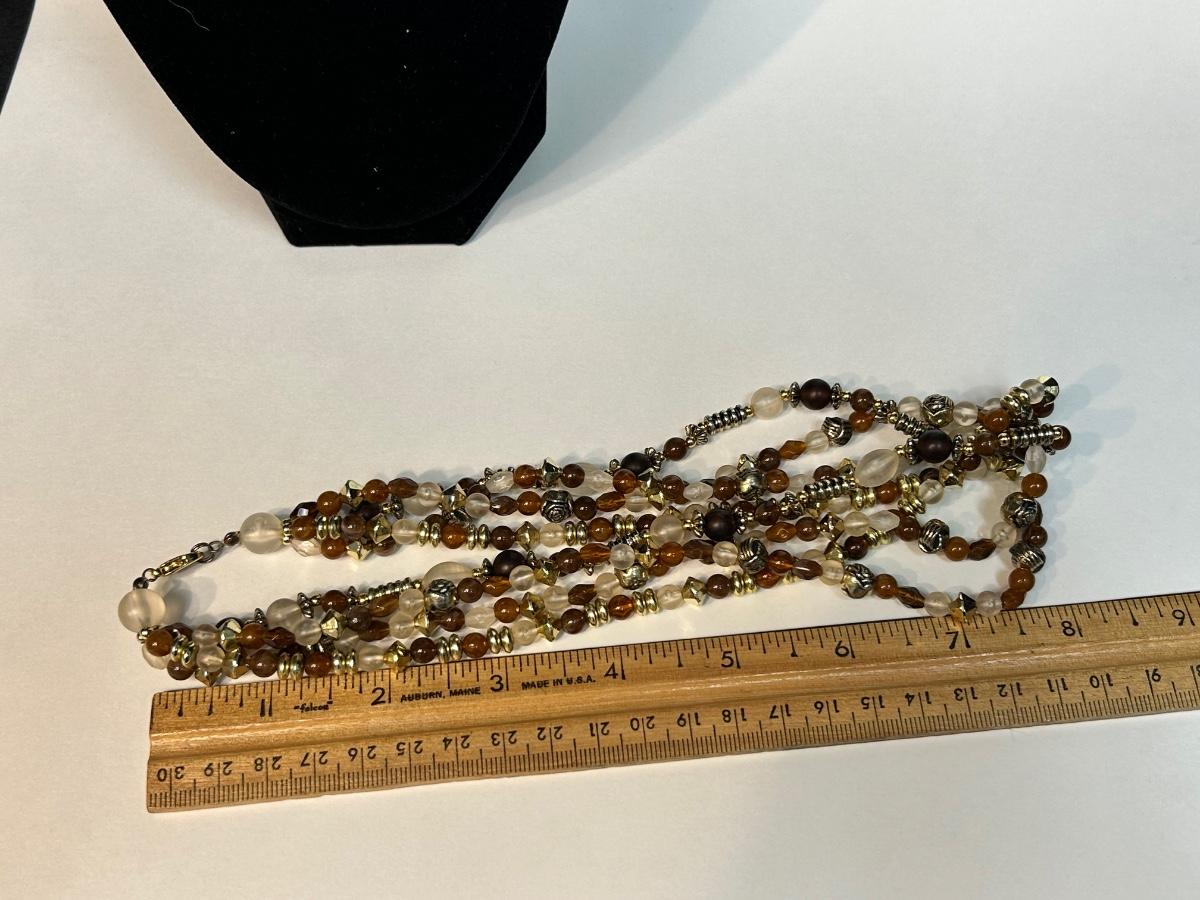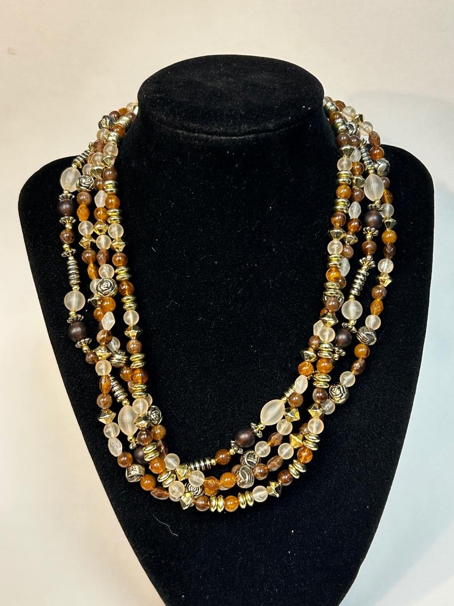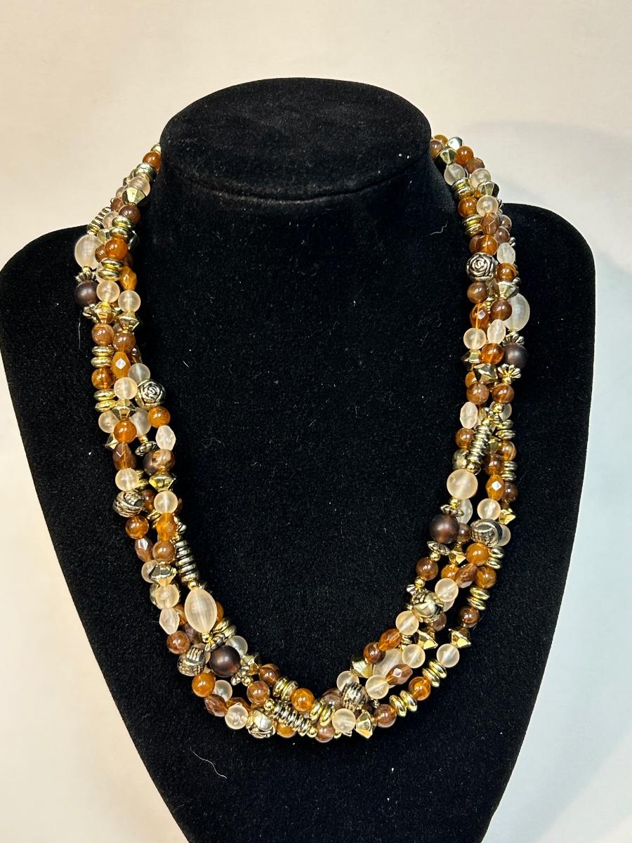 Neutral Tone Beaded Twisted Strand Fashion Necklace. Good condition. Plastic beads.