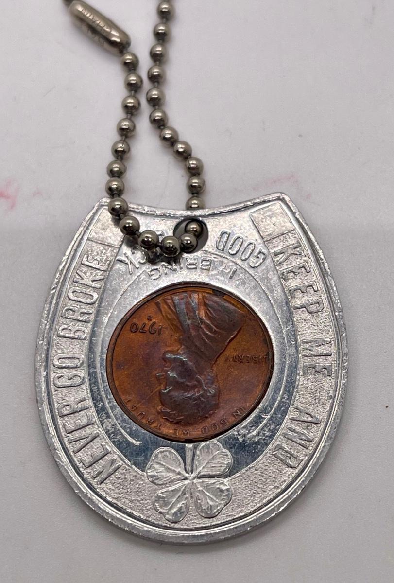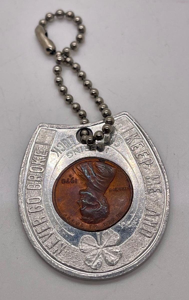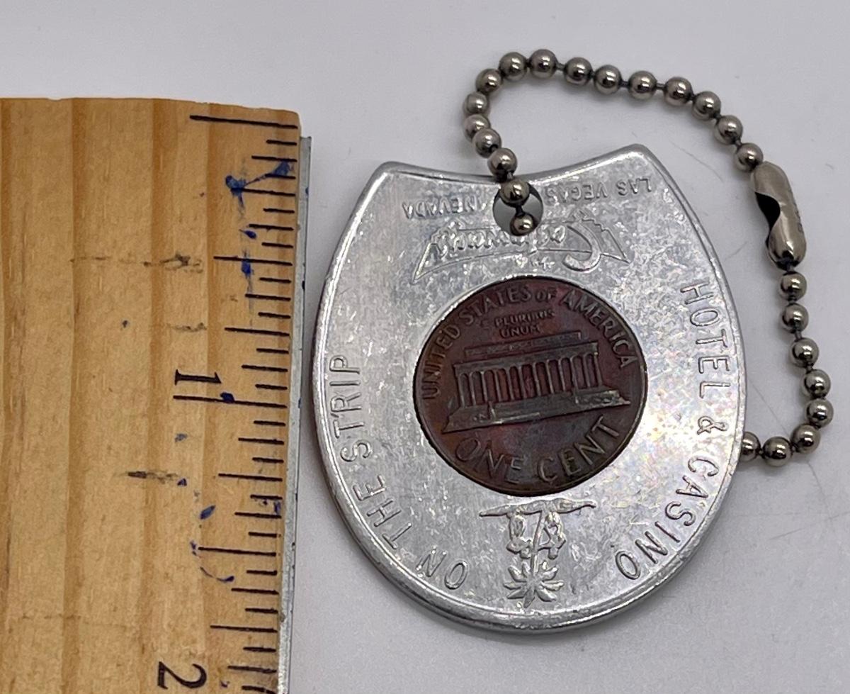 Vintage 70s Las Vegas Castaway Hotel & Casino Horseshoe Lucky Penny Good Luck Token Keychain Fob