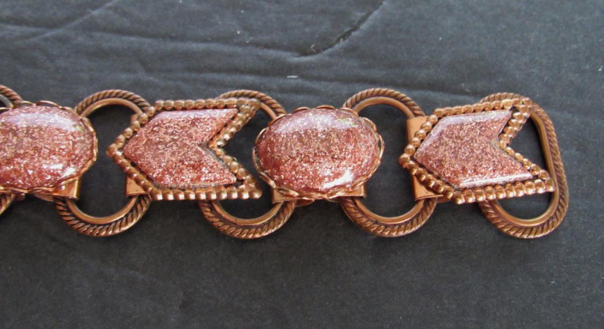 Vintage Copper Colored Metal and Sandstone Braclet