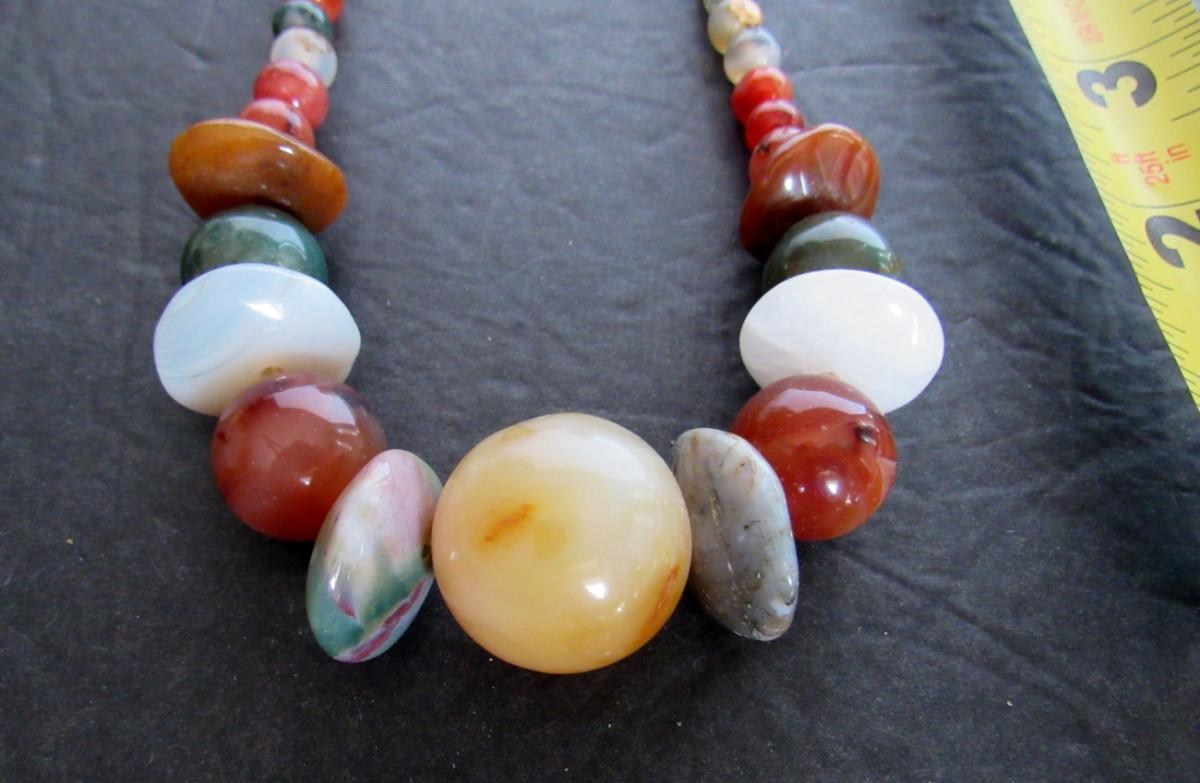 Unmarked. Very nice shape. Some really nice stones, round and disk shaped. Heavy! Shipping is available at actual shipping cost plus $5.00 handling fee per box for supplies/labor. See our terms for details. All sales are final. Condition notes may not be all inclusive, we may miss some issues as most vintage items are not in mint condition and have some degree of wear, paint loss, etc, but we always try to note obvious damage.