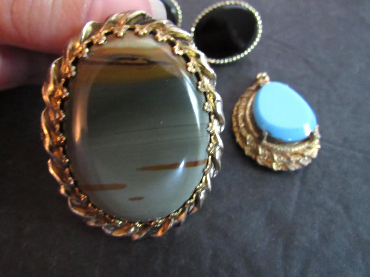 Vintage Stone Costume Jewelry, Brooch, Earrings, Pendant