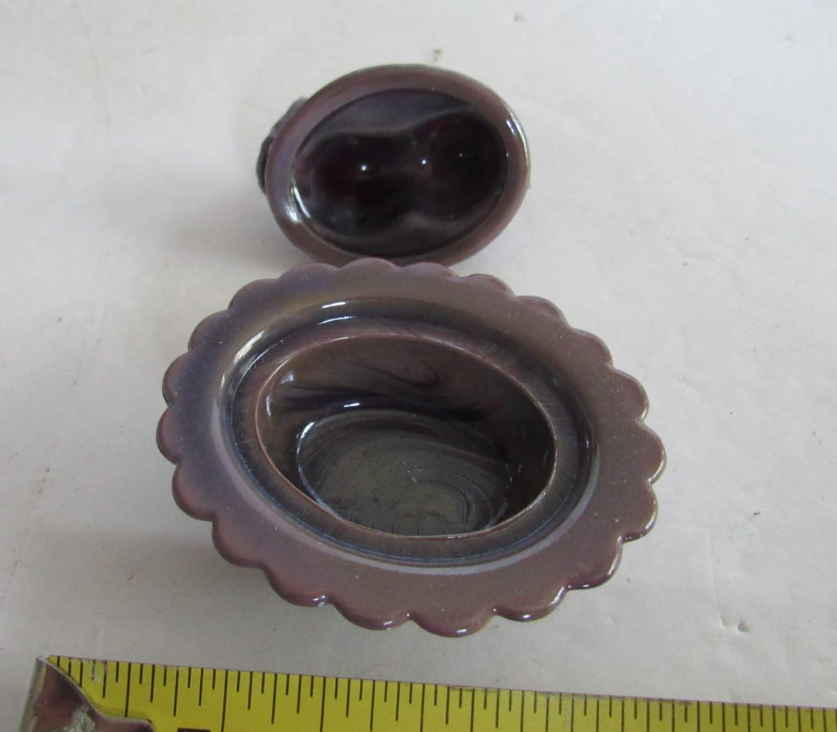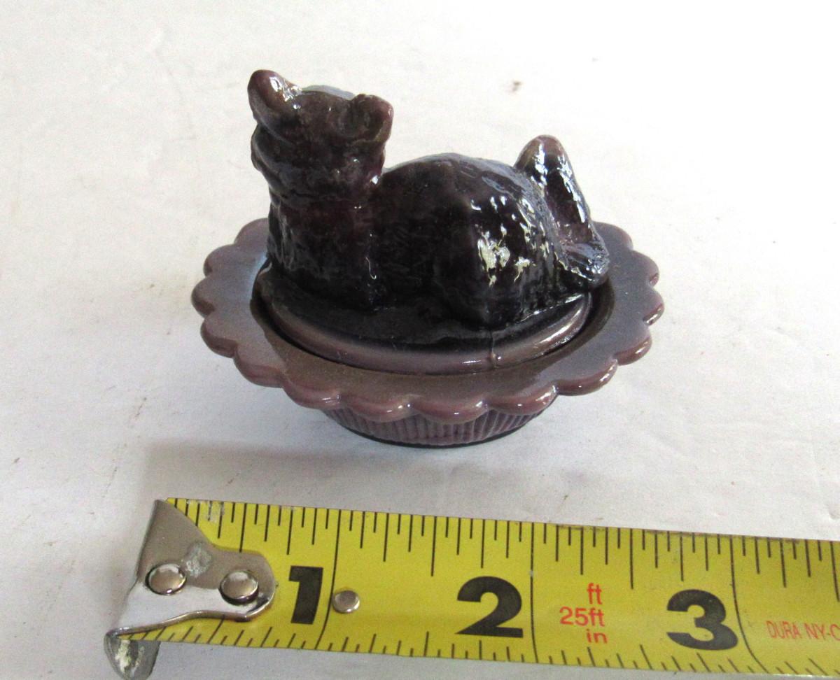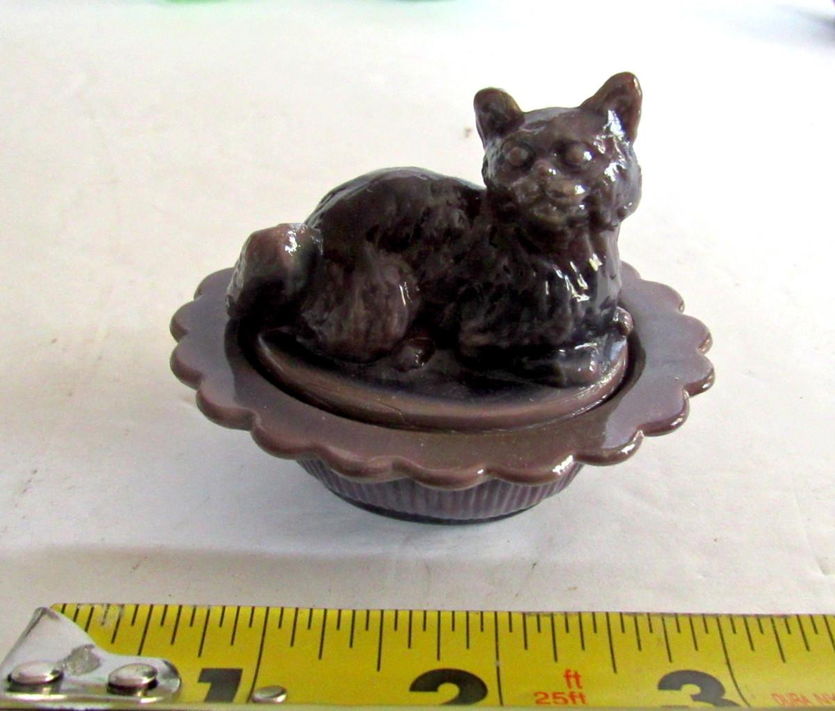 Older Mosser Glass Plum Slag Cat Covered Salt