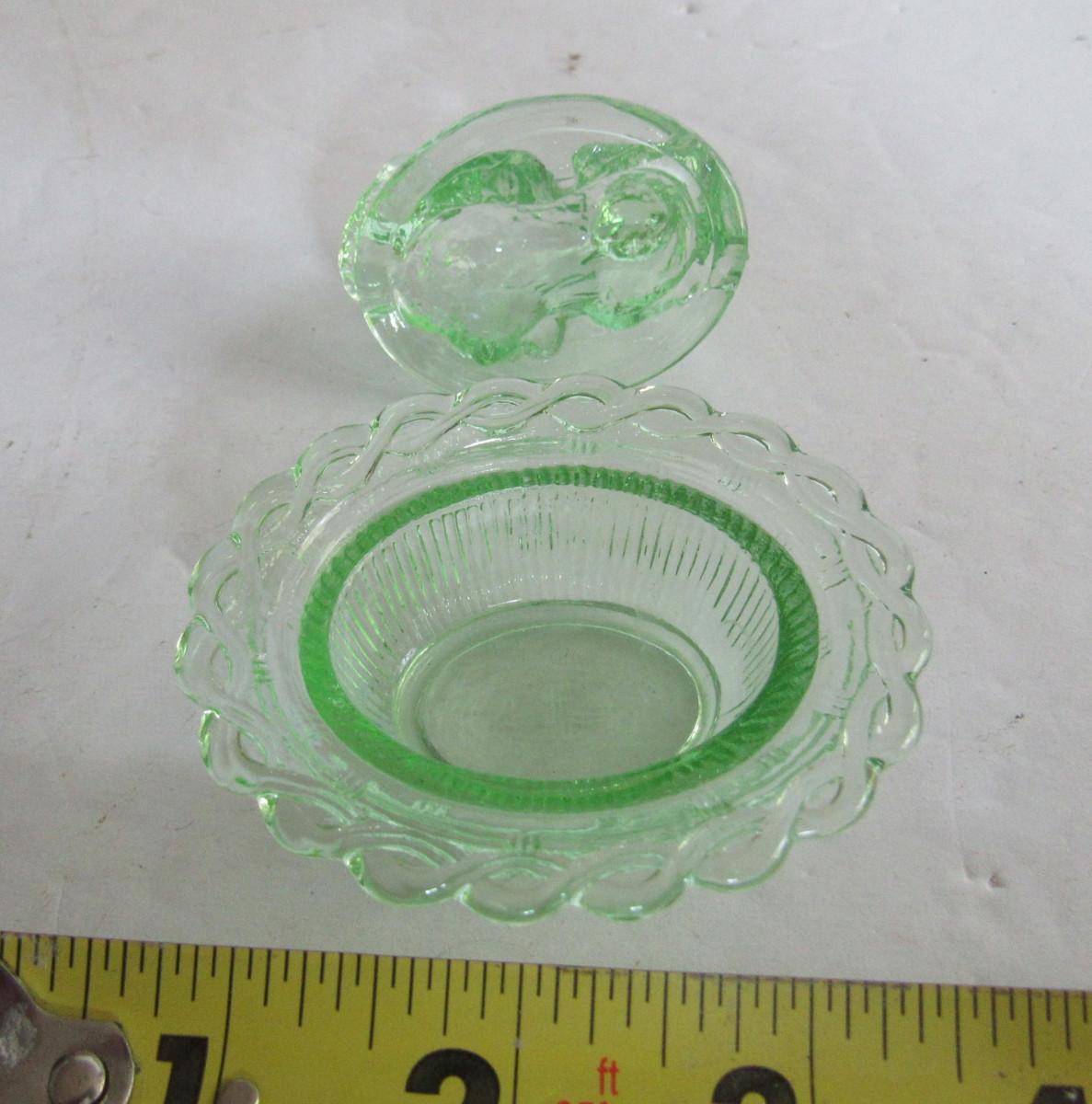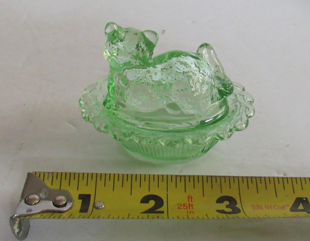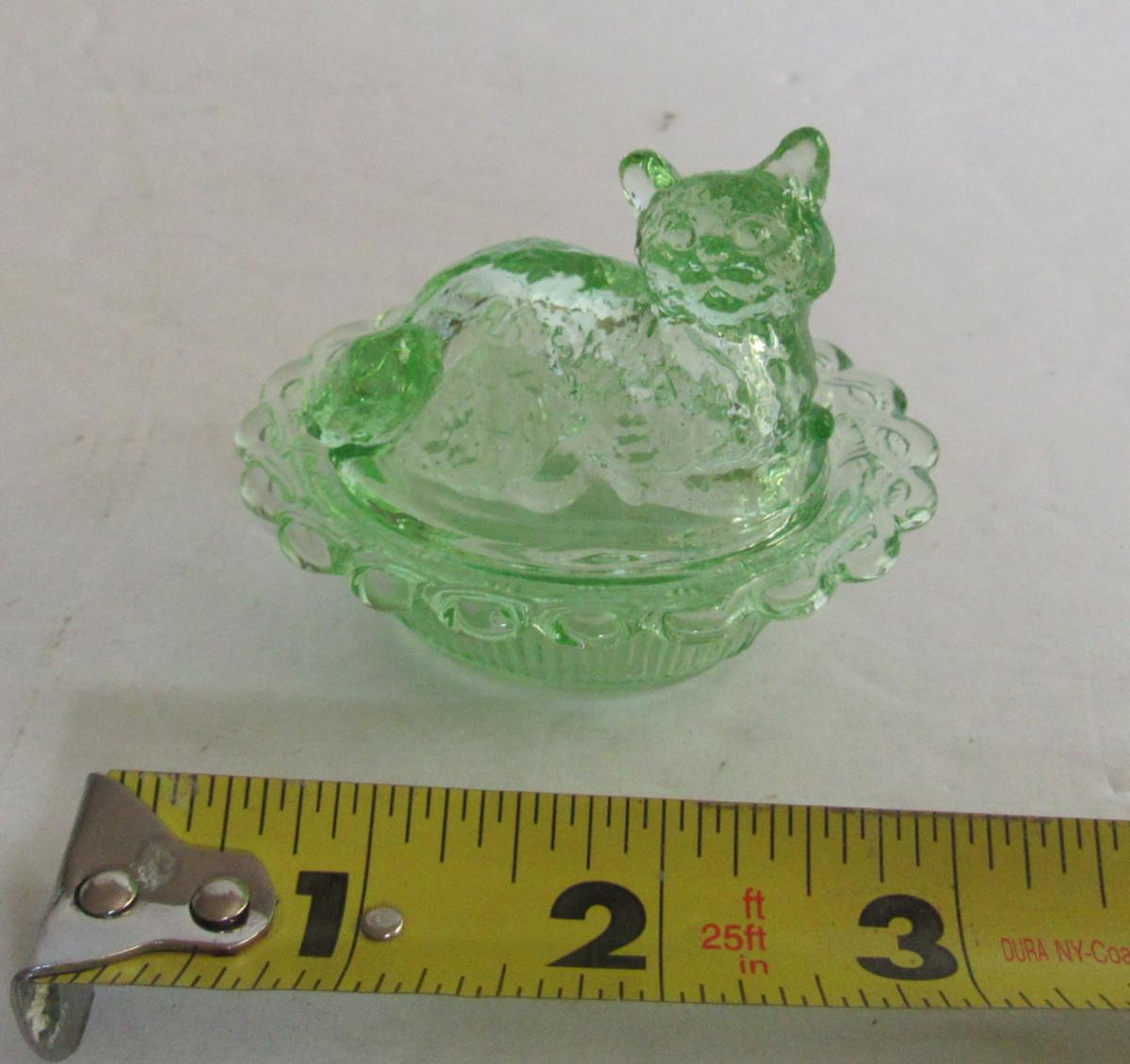 Older Mosser Glass Transparent Green Cat Covered Salt