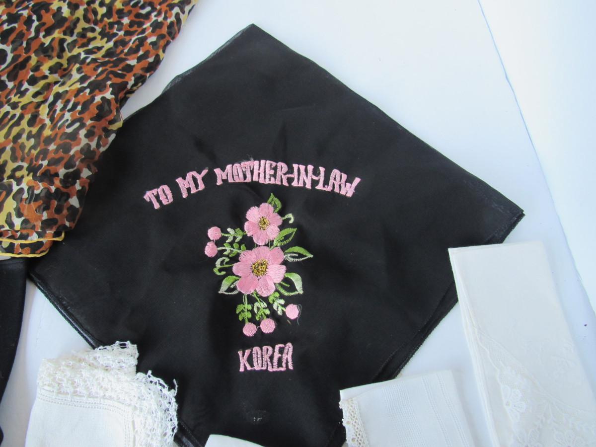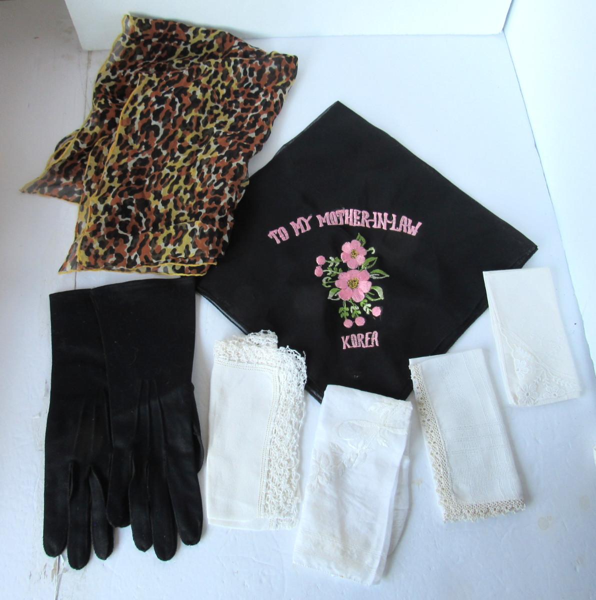 Ladies Lot Vintage Scarves, Hankies, Gloves