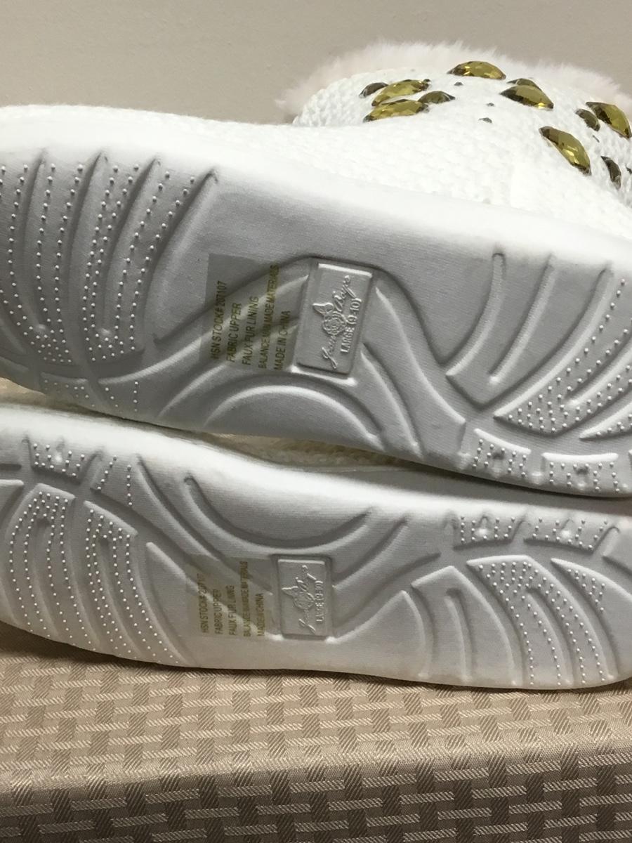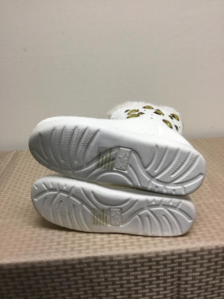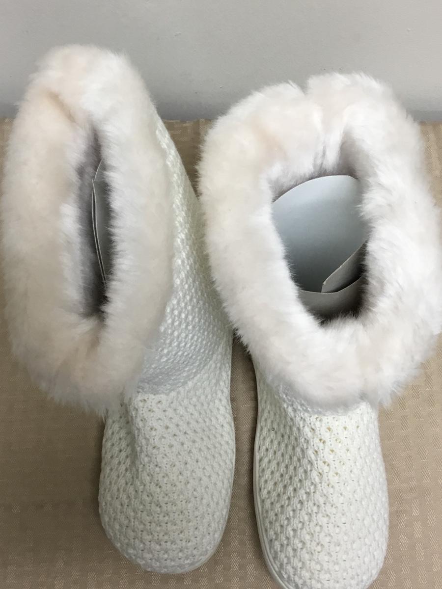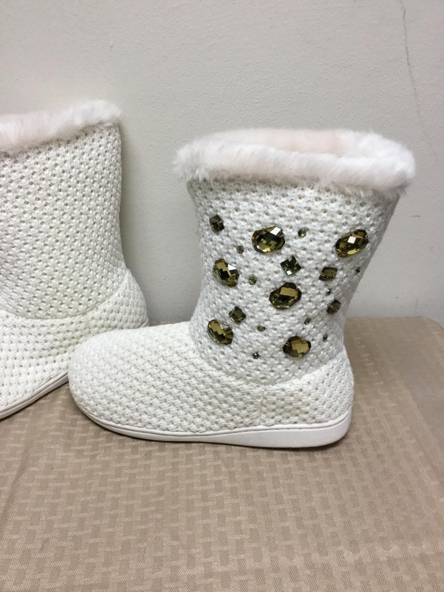 White Crochet Fleece Lined Boot with Gold Rhinestones. From HSN. Size Large. New.