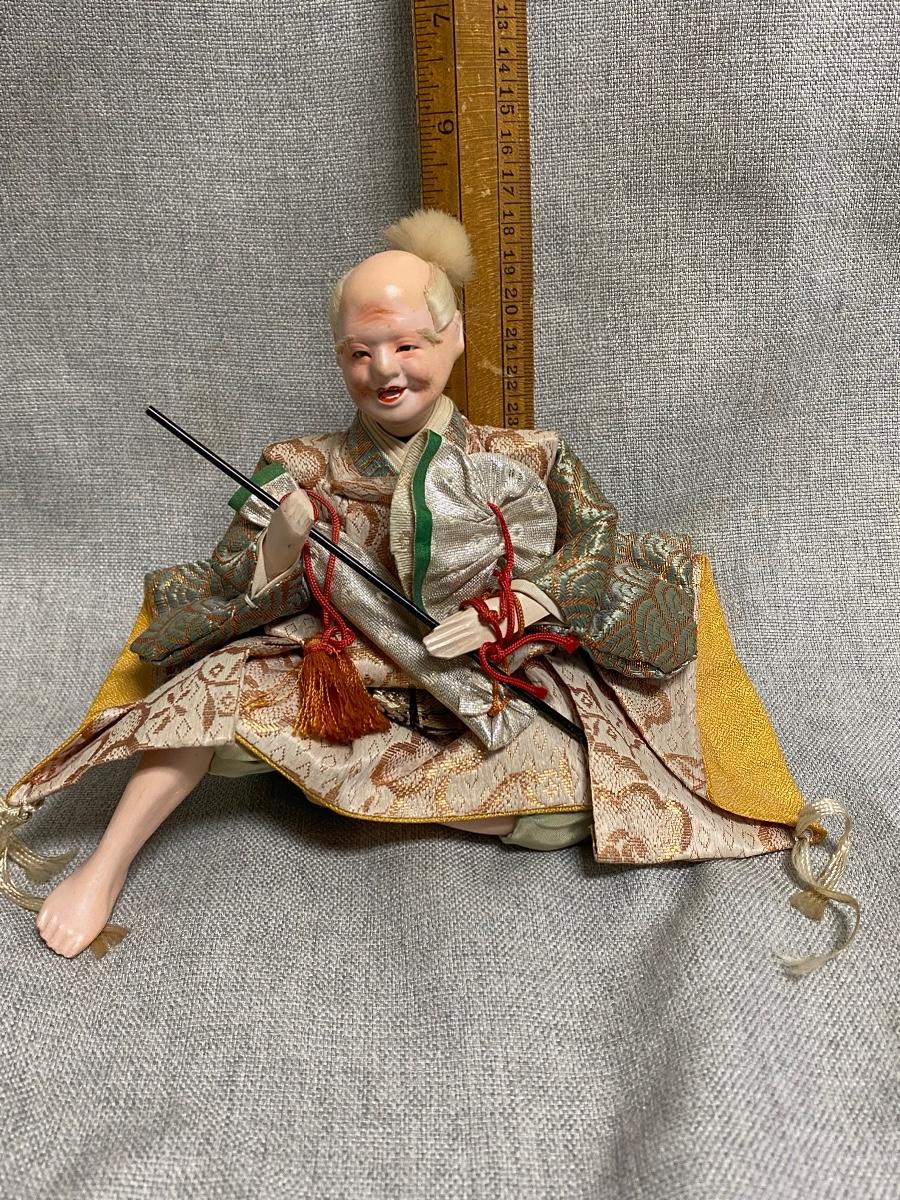 Vintage old man figurine style doll. Composite & wood. Made in Japan. Head will come off if turned upside down.