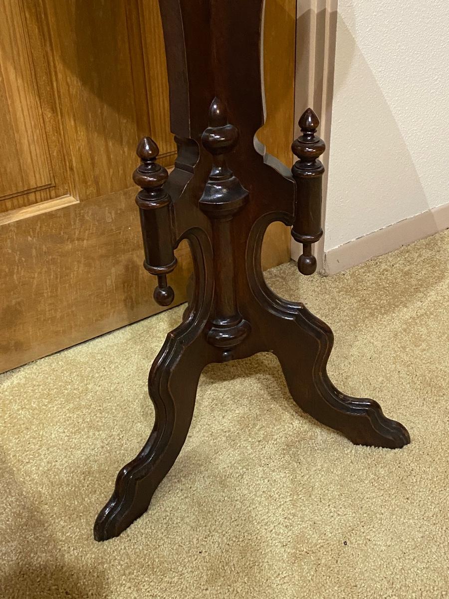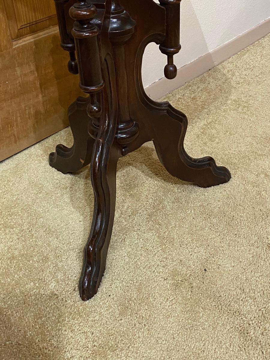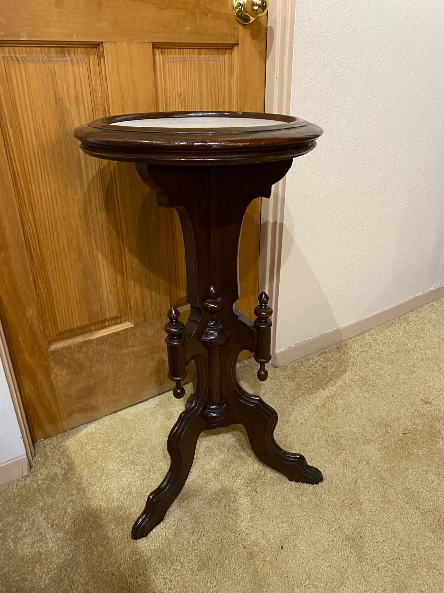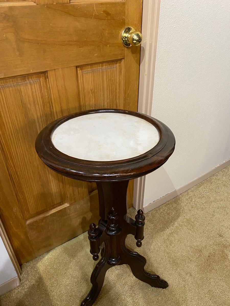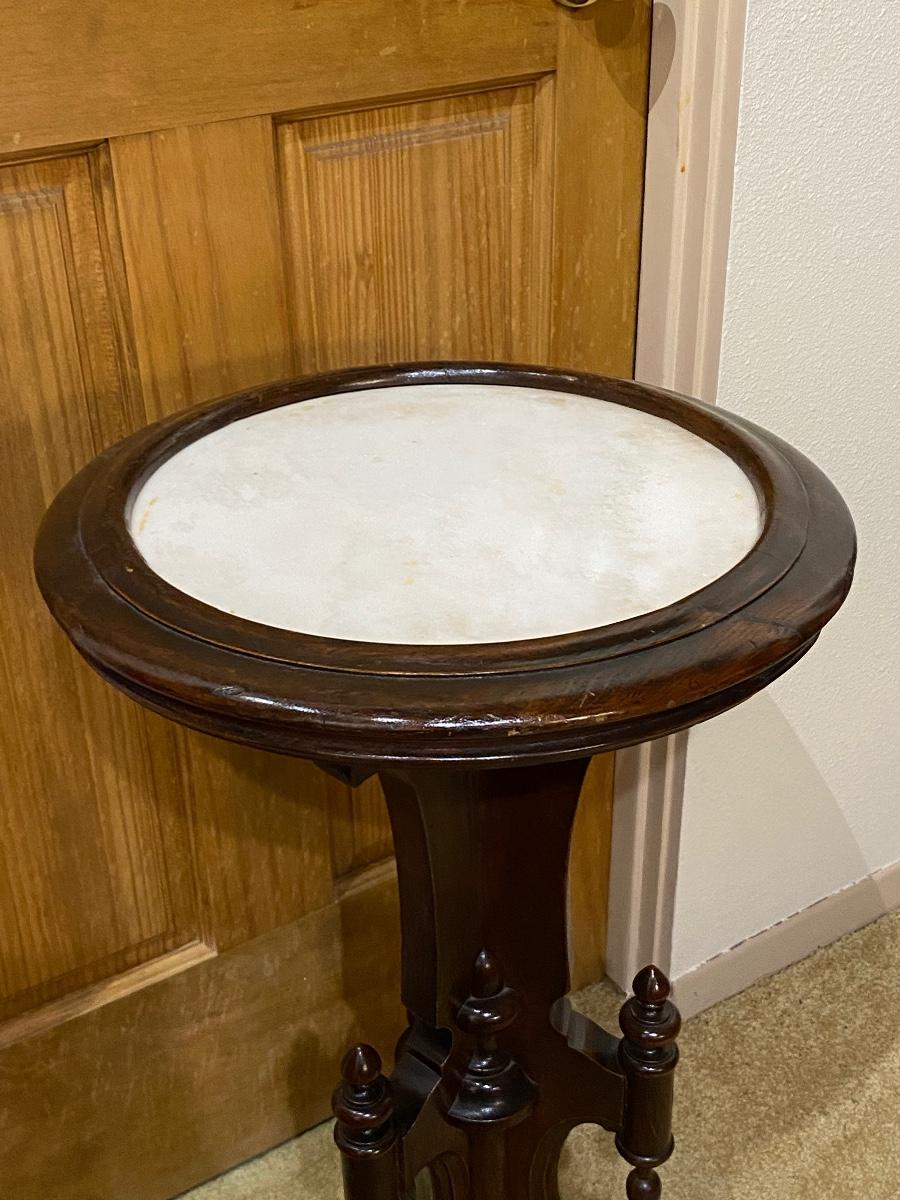 Small Round Carved Wood Antique Accent Table Plant Stand w/ Marble Top