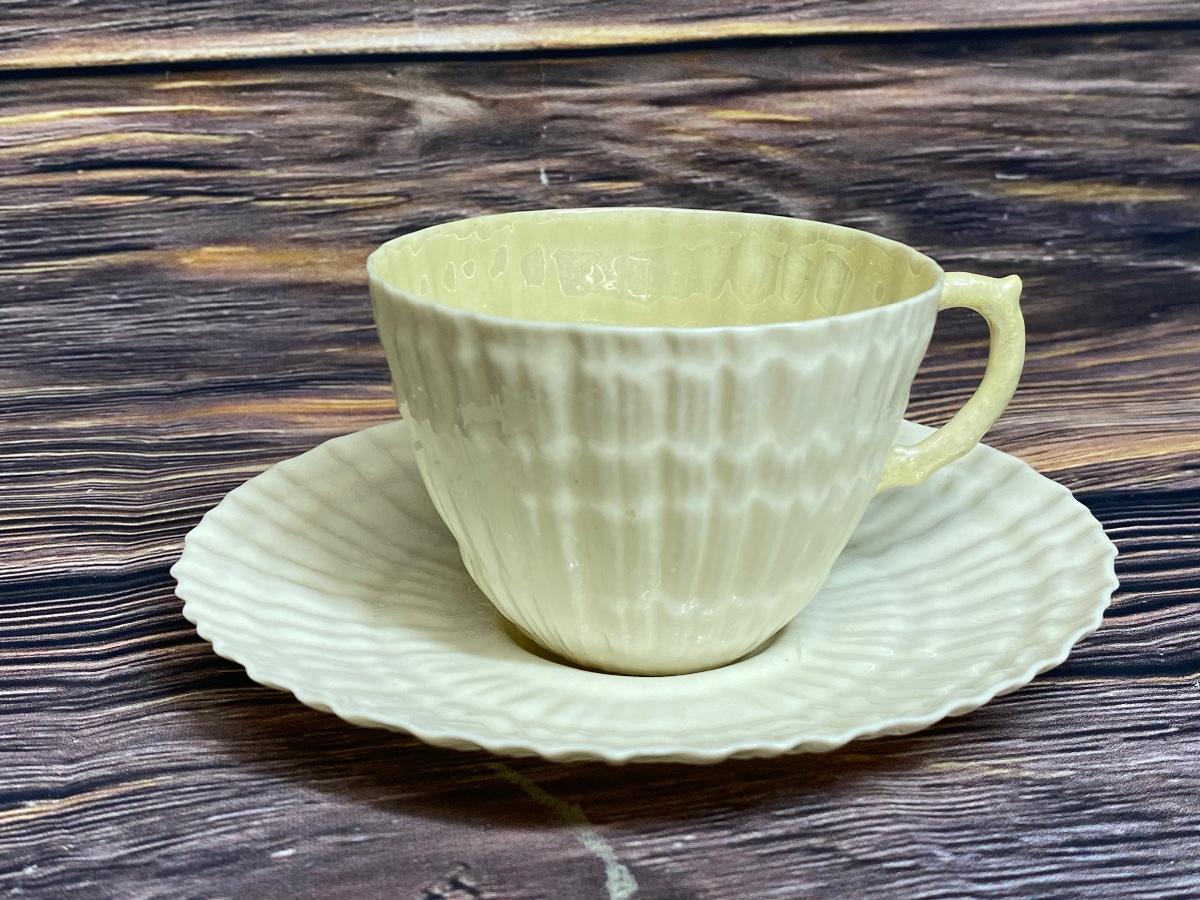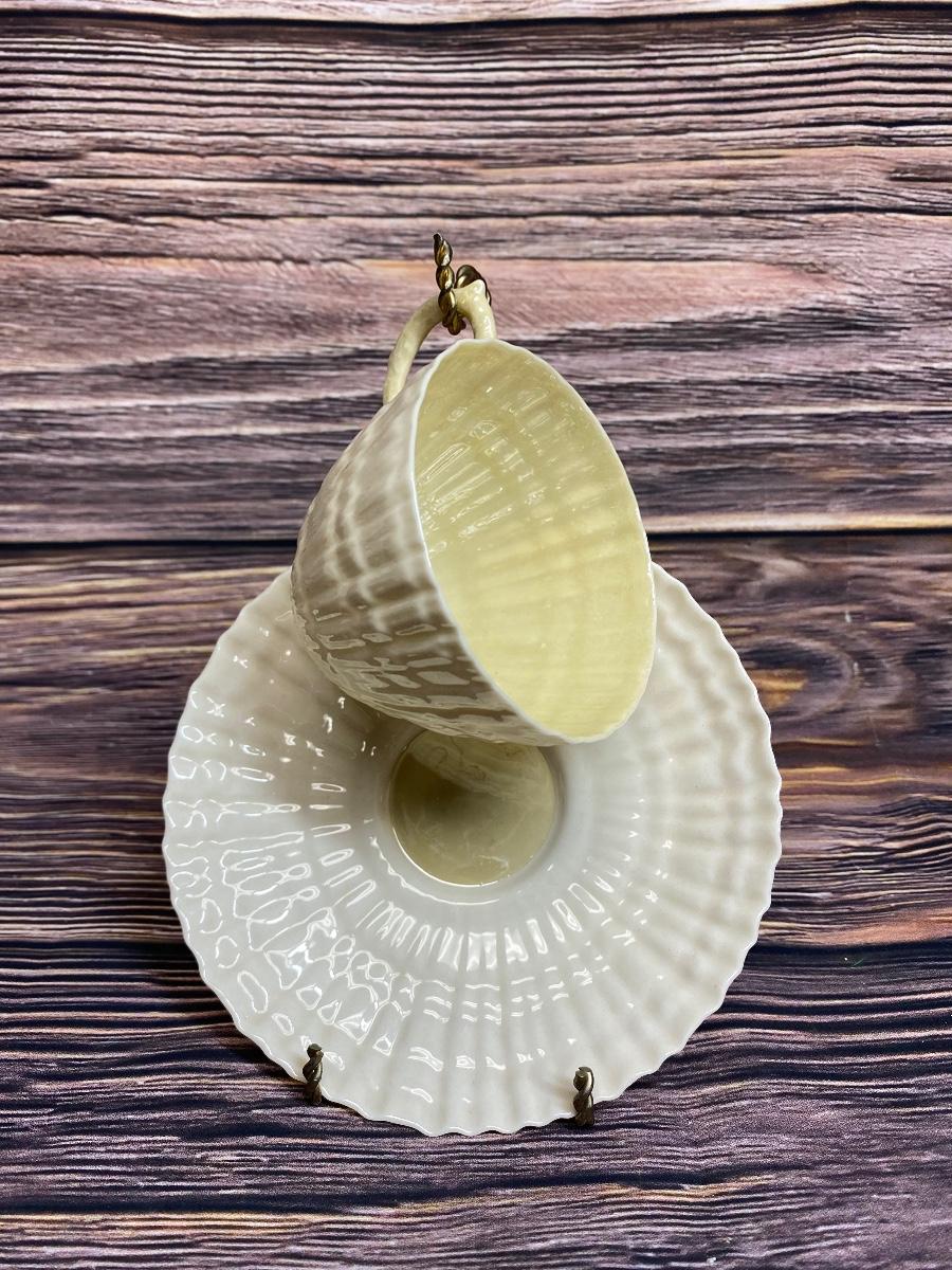 Belleek Tea Cup and Saucer, Limpet/Nautlis pattern