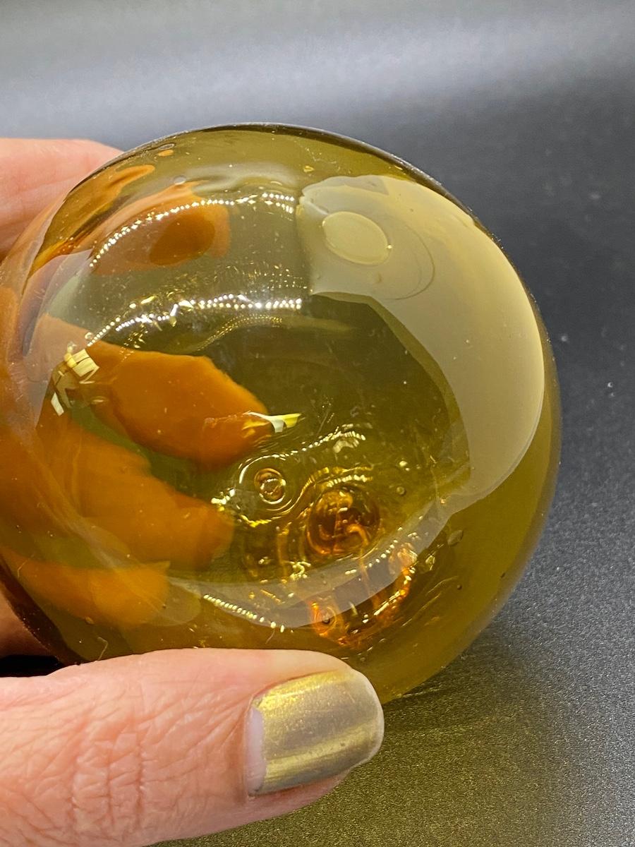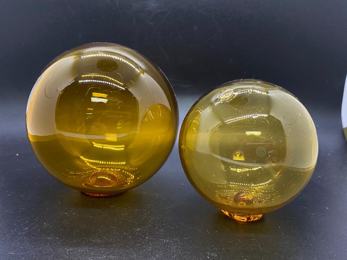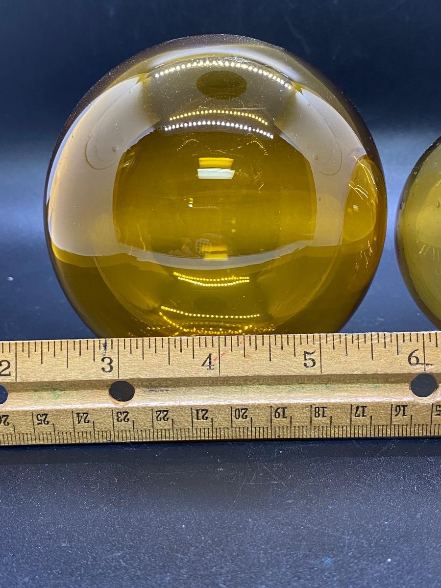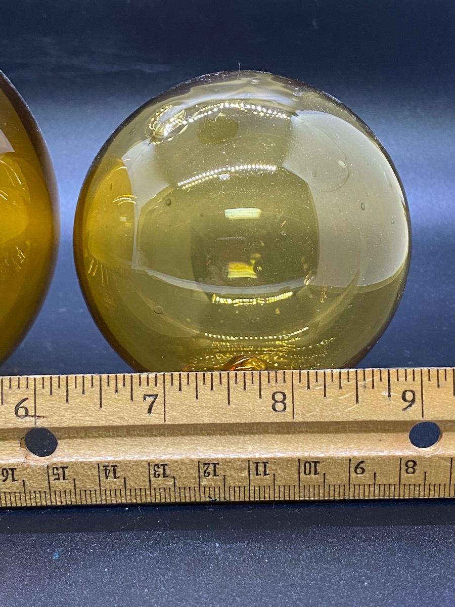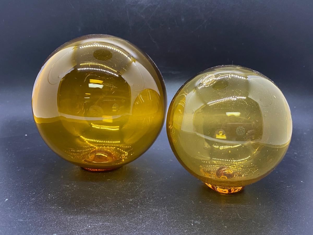 Pair of Amber Glass Fishing Net Float Balls Orbs
