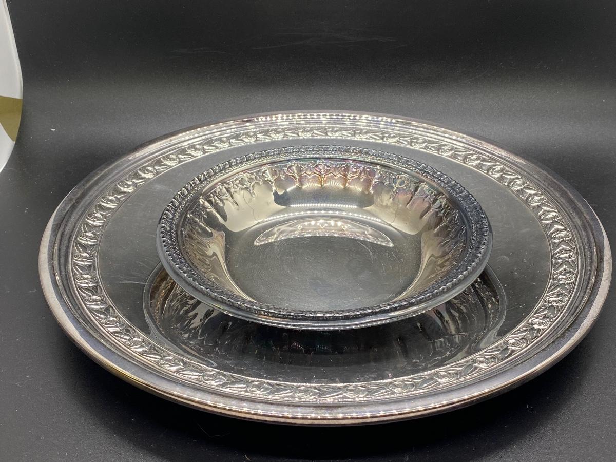 Reed & Barton Silver Plate Vegetable Platter with Dip Bowl Serving Set. Simple yet elegant design. Good condition. Platter is about 11" size.