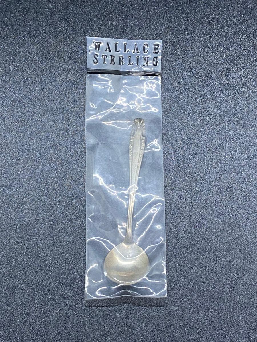 Wallace Art Deco Sterling Silver Salt Spoon UNOPENED. About 2.5" size.