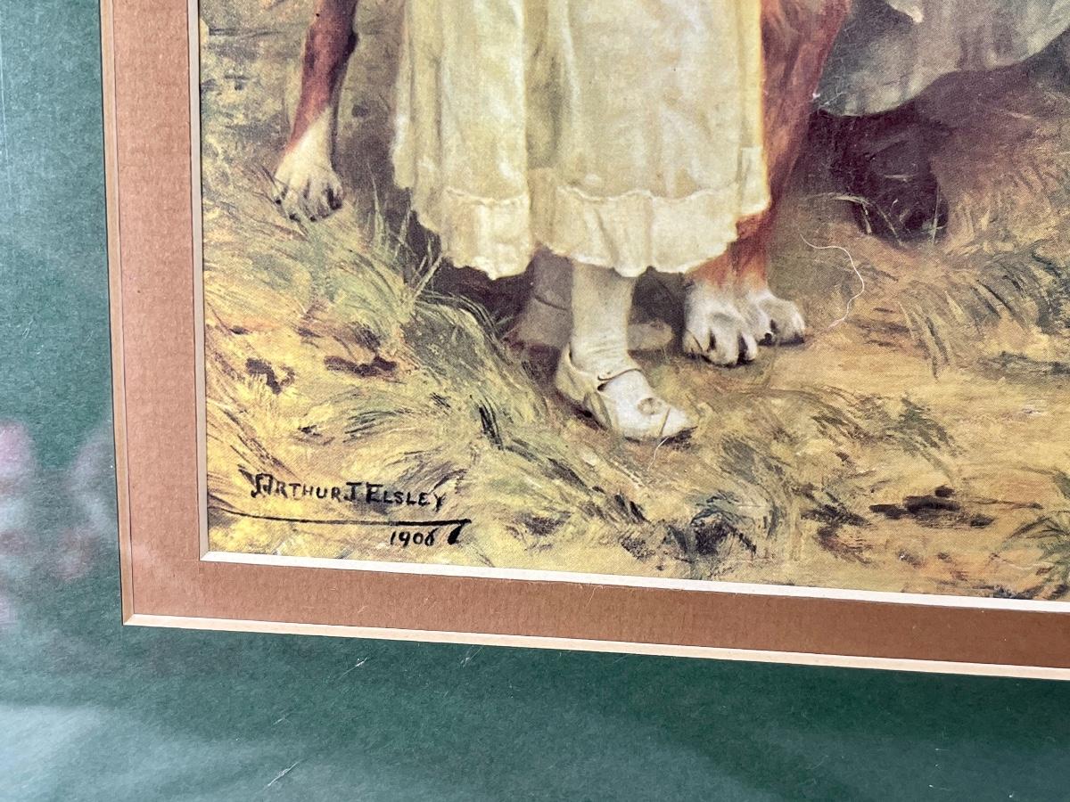 Framed Lithograph Art Print Children with Dog & Horse by John Elsley