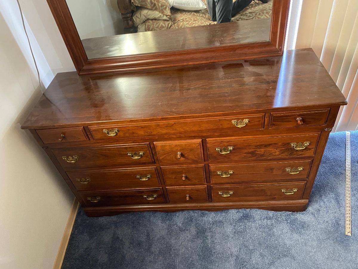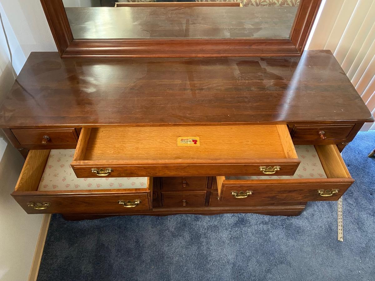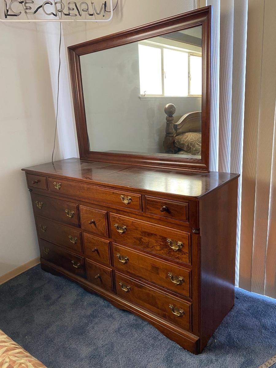 Vintage cherry wood dresser with mirror from Monitor Furniture Co. Good condition, lots of drawers. LOCAL PICK UP IN FULLERTON.