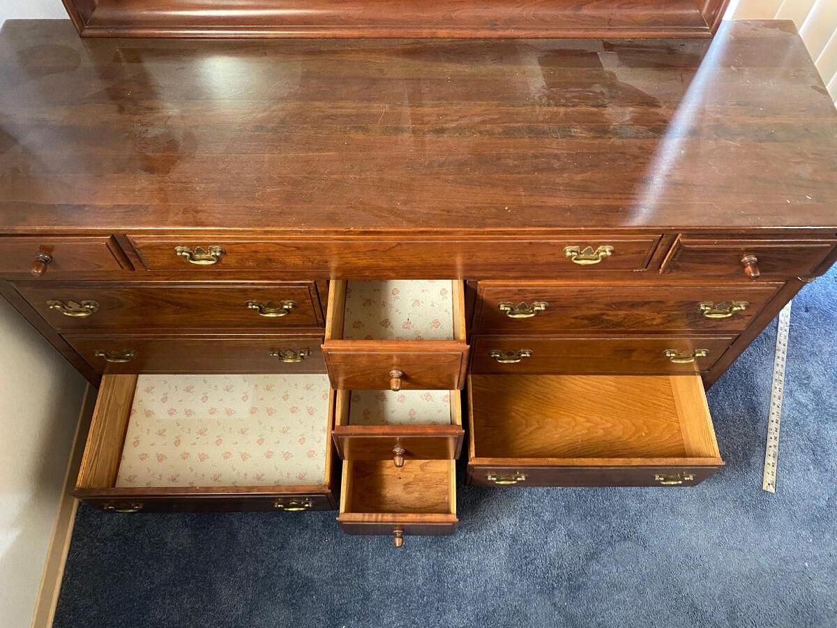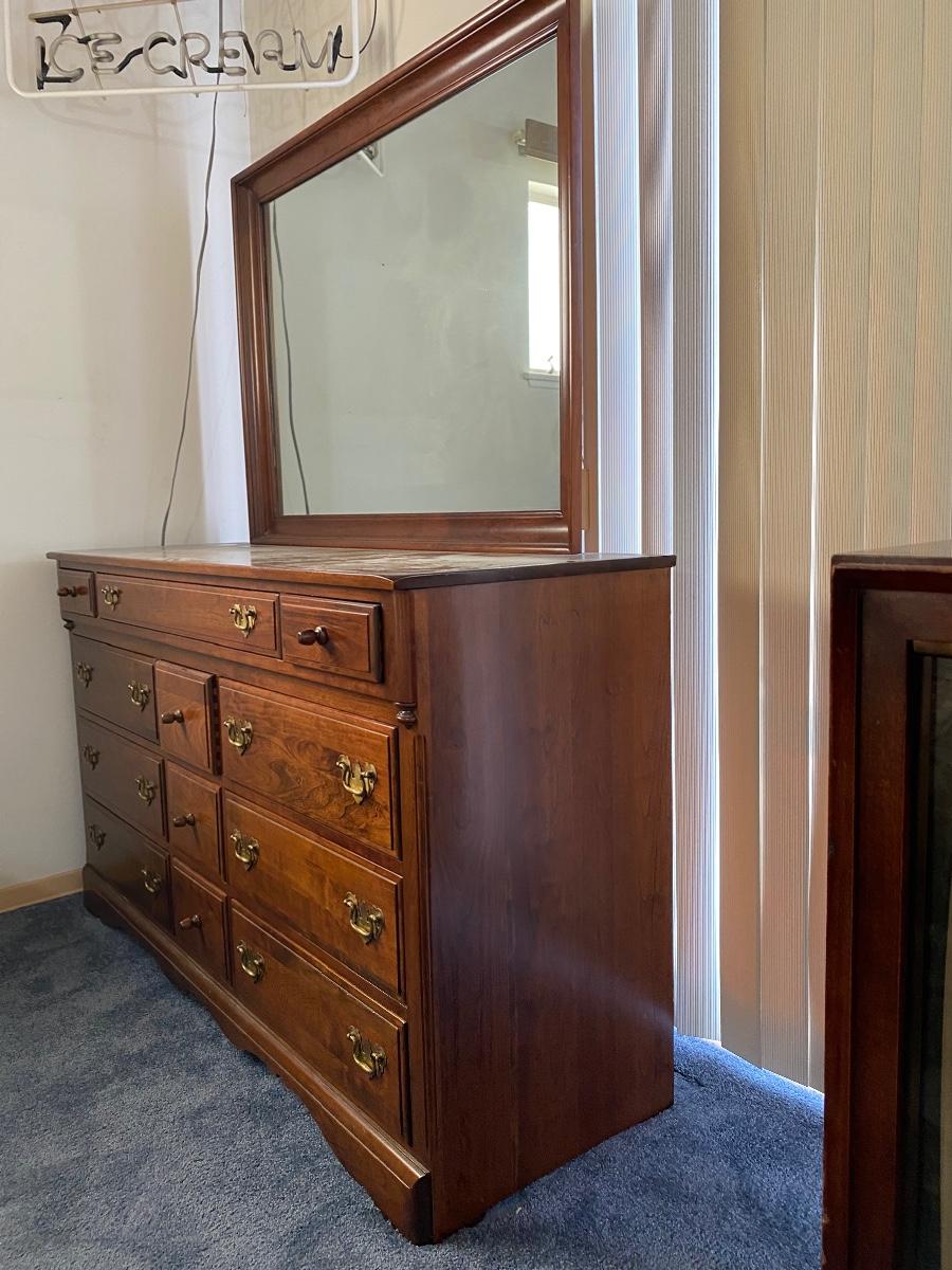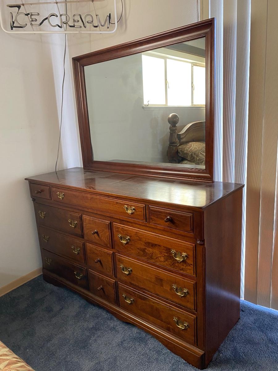 Vintage cherry wood dresser with mirror from Monitor Furniture Co. Good condition, lots of drawers. LOCAL PICK UP IN FULLERTON.