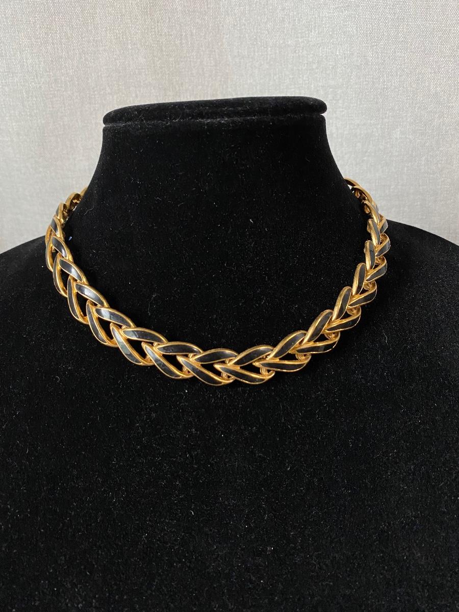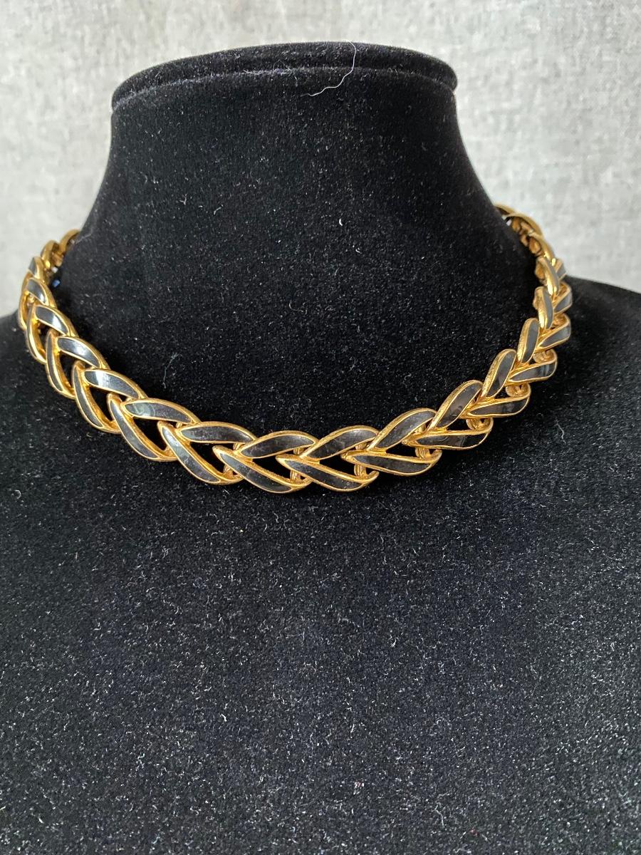 Gold tone and black enamel choker style necklace from Napier. Good worn condition, light signs of use.