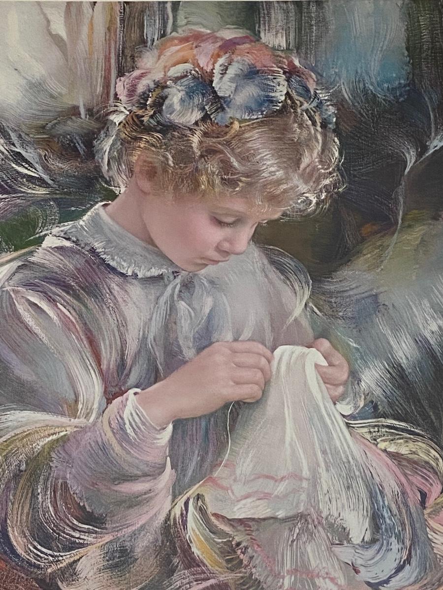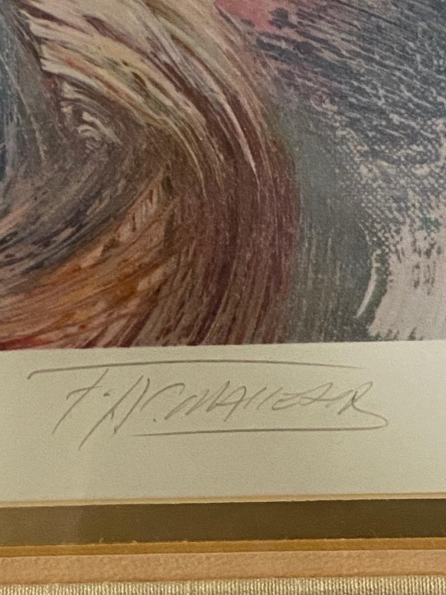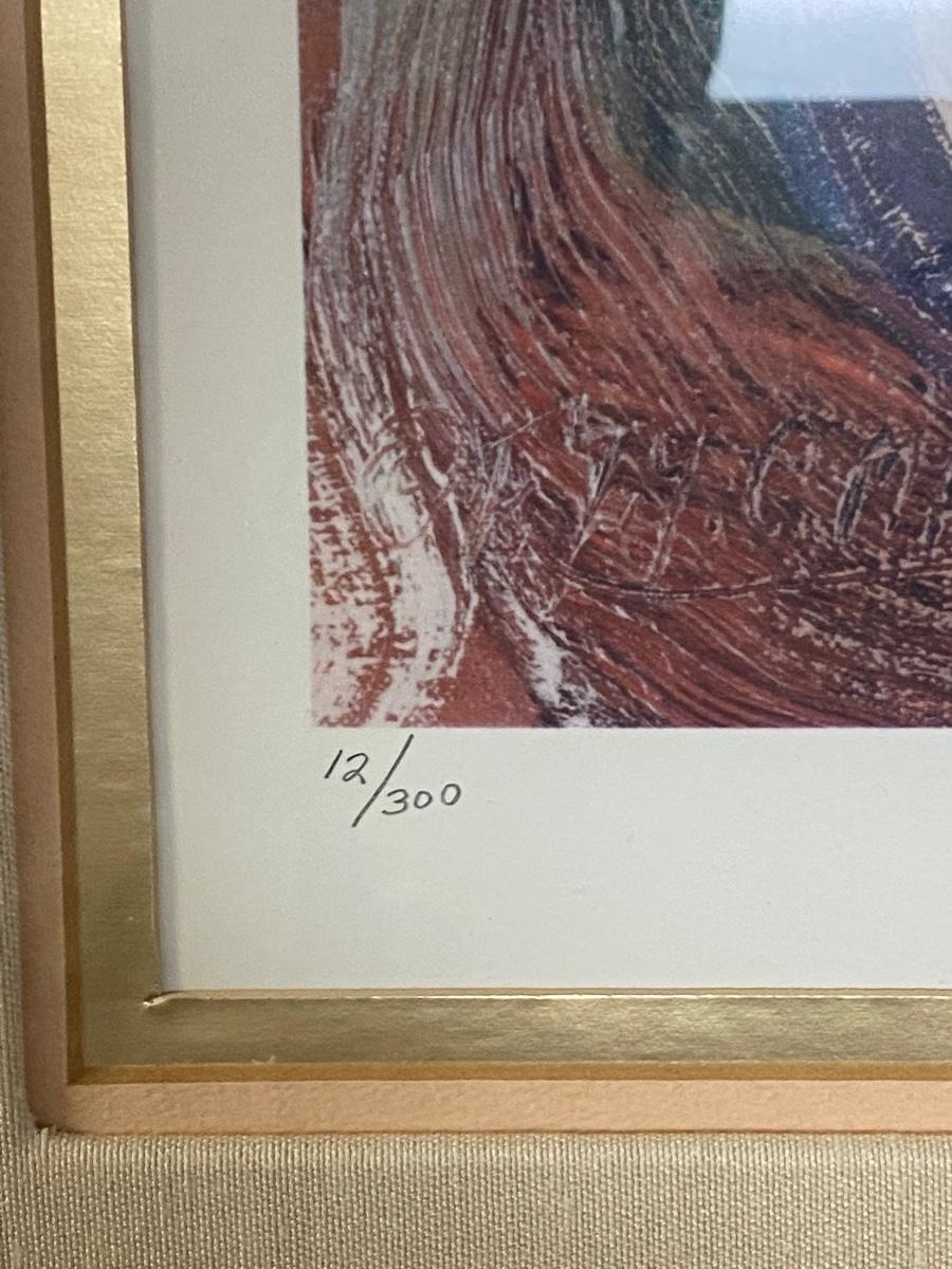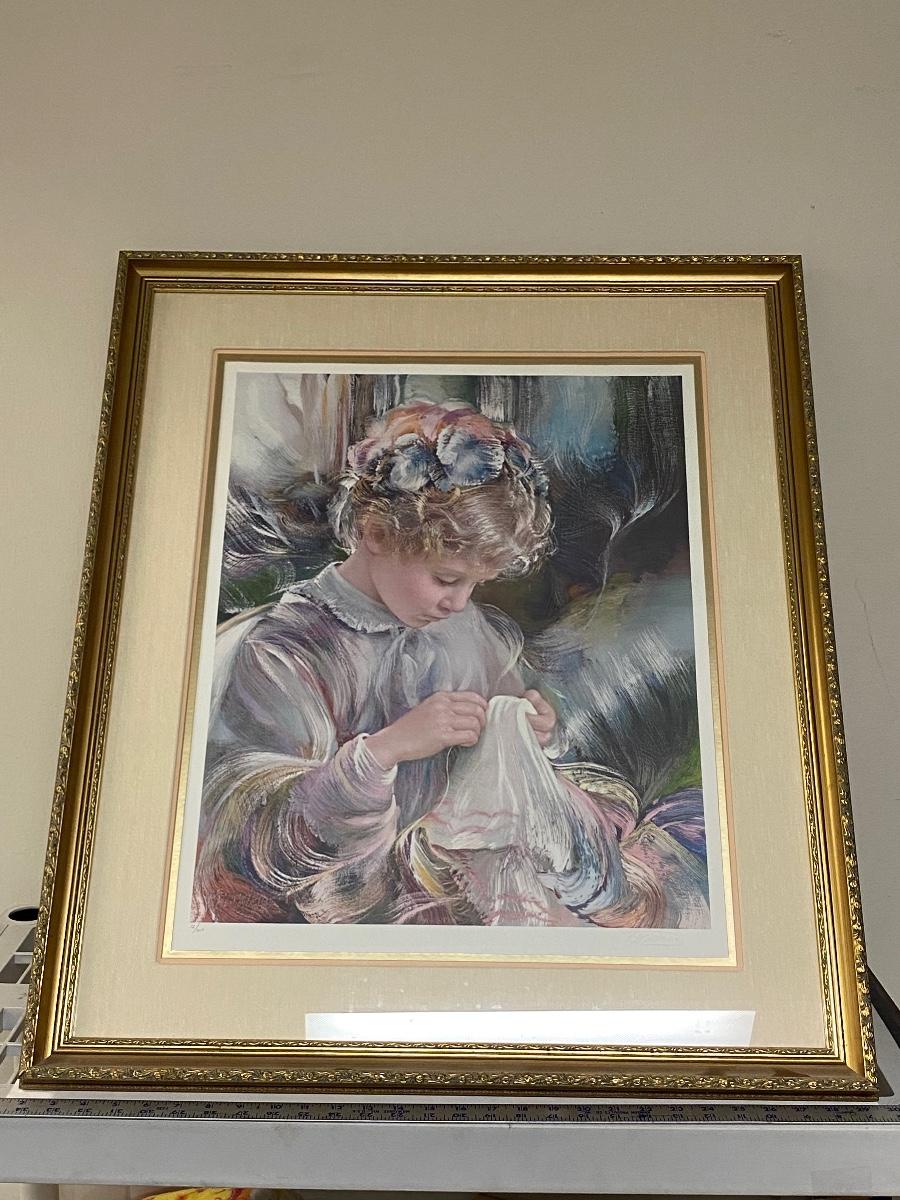 Large 28x32 framed print of child. Signed by artist, but can not make out signature. Numbered edition 12/300. Good condition.