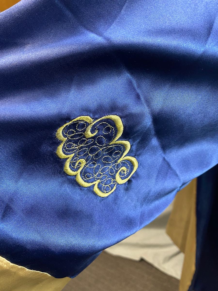 Blue & Gold Reversible Satin Embroidered Dragon Asian Robe Kimono