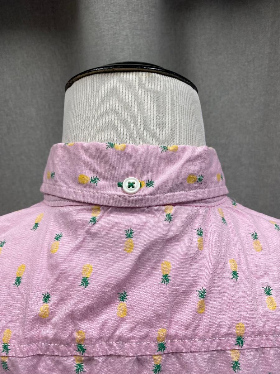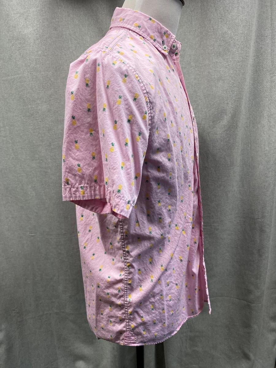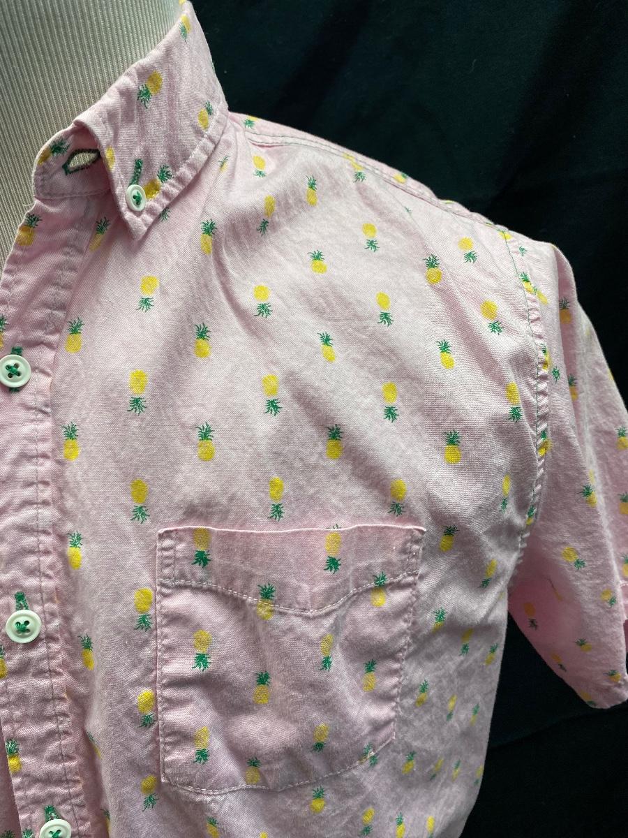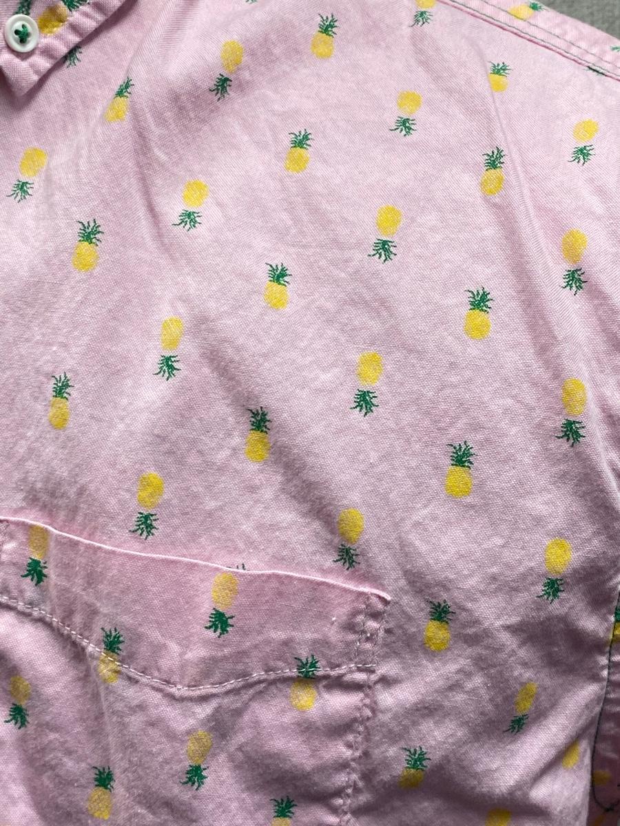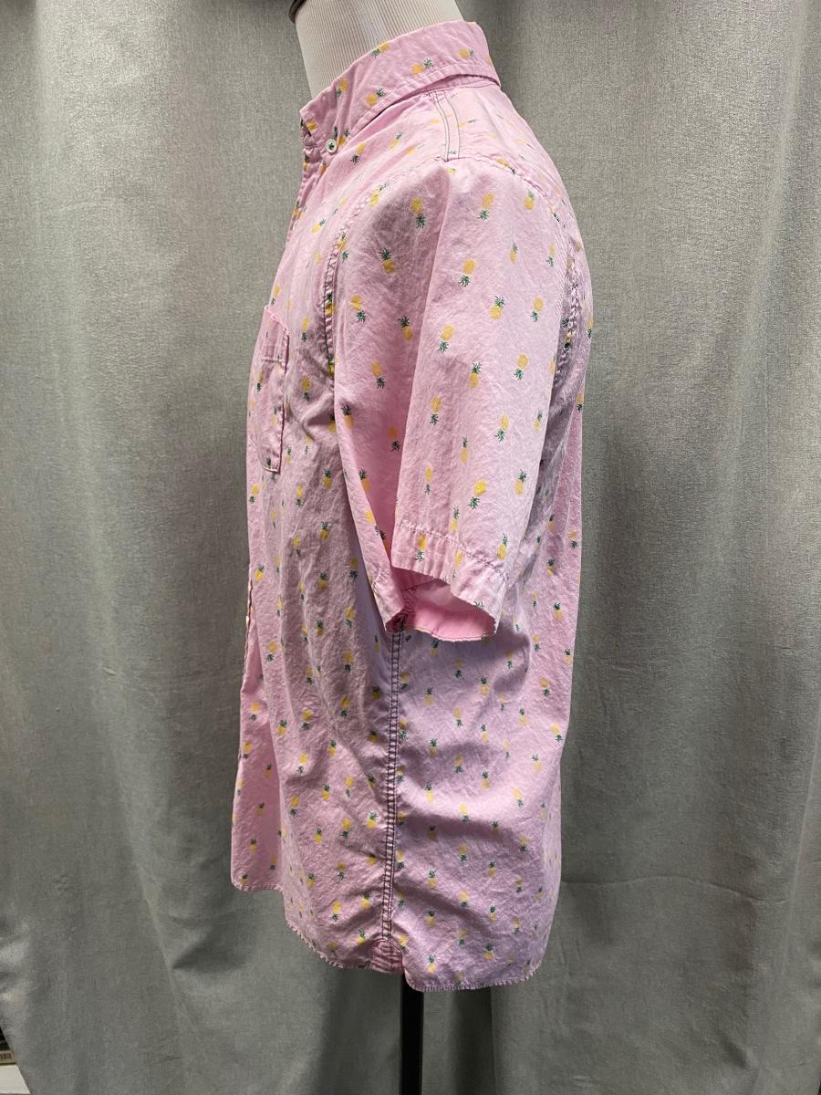 Sovereign Code LA men's pale pink pineapple patterned button front shirt. Short sleeve. Size tag removed, looks like a medium or slim fit large. Good condition.