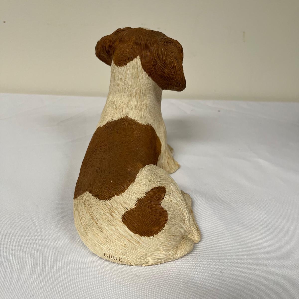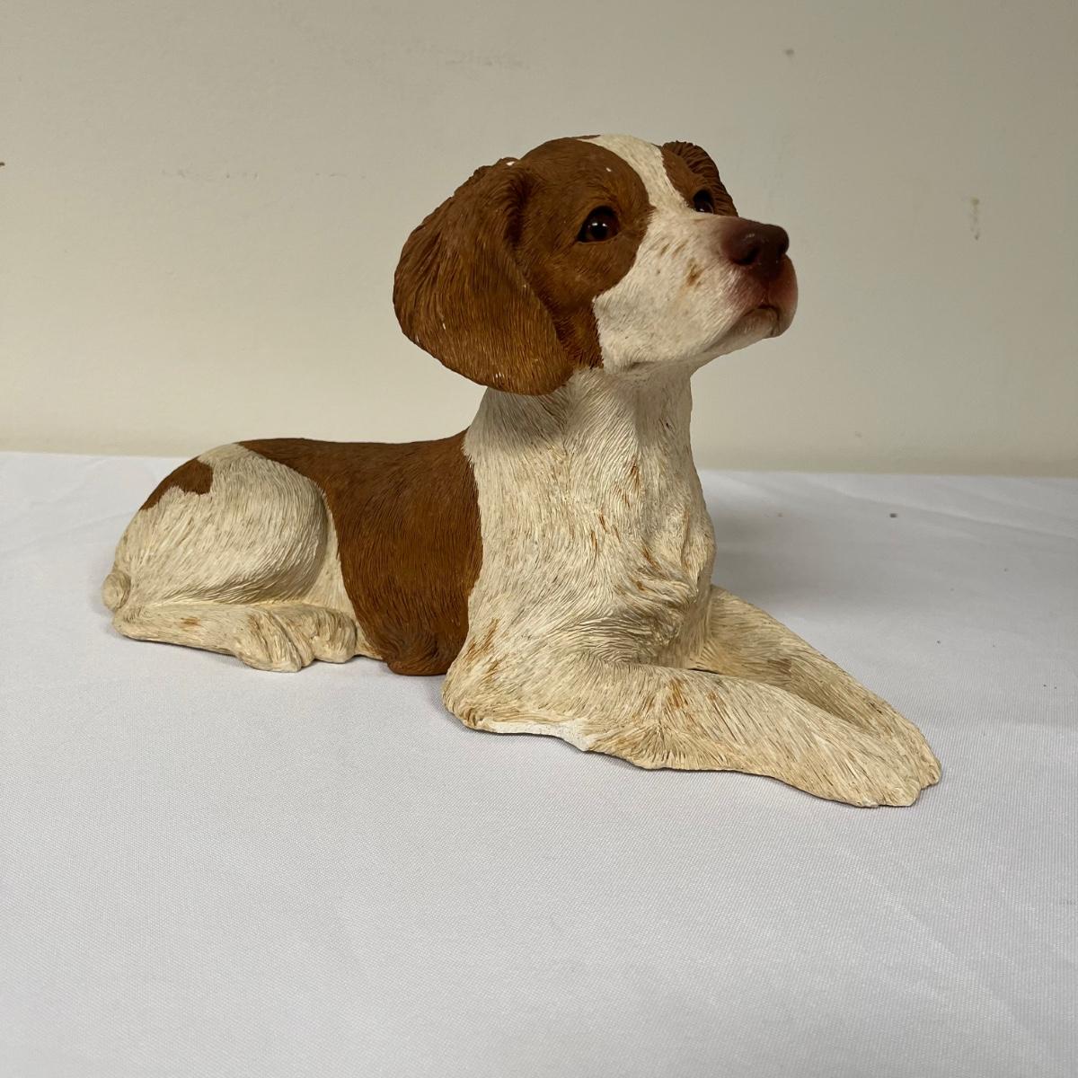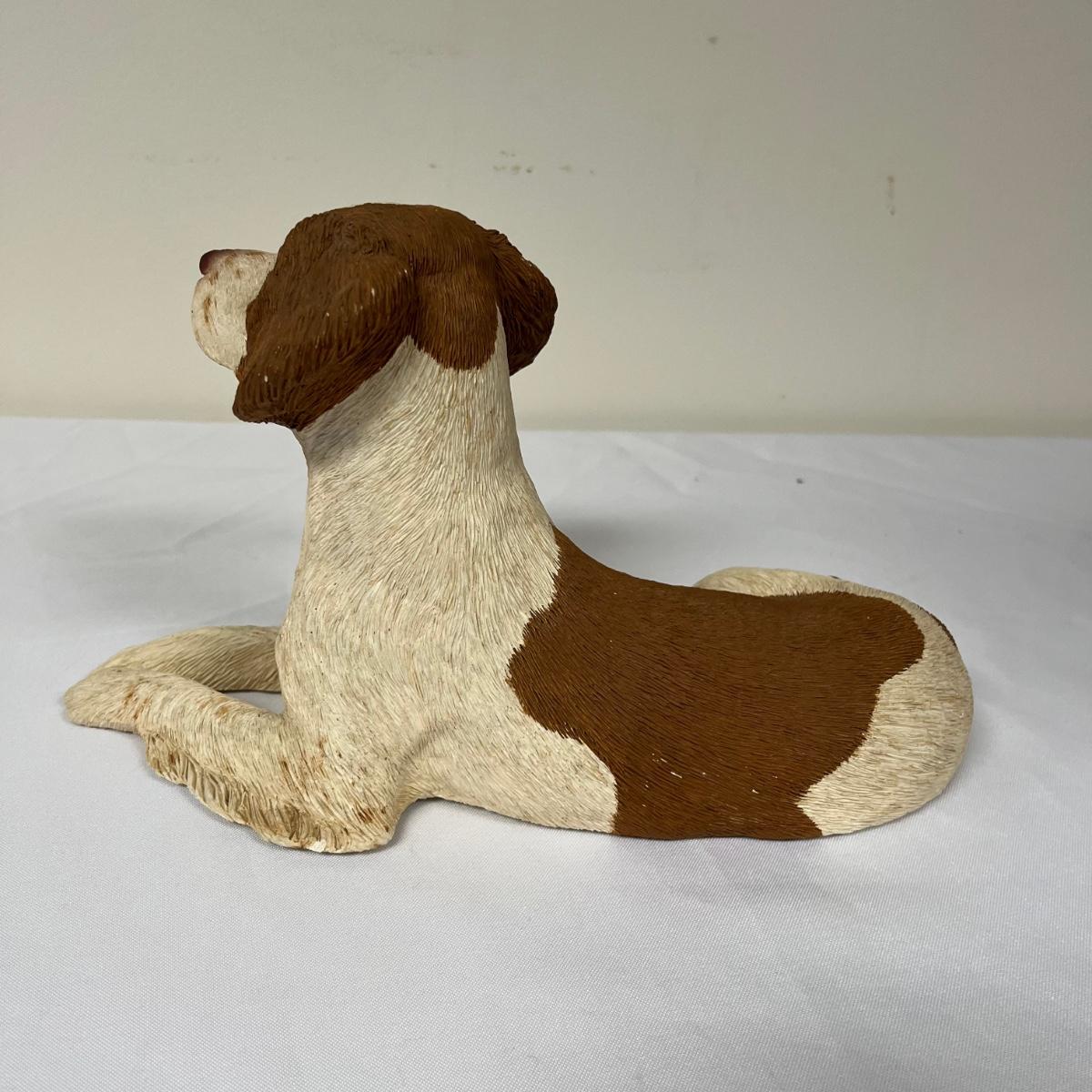 Lot includes a Handcrafted and hand painted Sandicast dog and a resin fire hydrant. Dog has initials etched on back. Dog has a chip on leg (see pictures) and measures 5” x 11” x 6.5”. The fire hydrant measures approximately 7.5” x 6.5” x 13.5”.