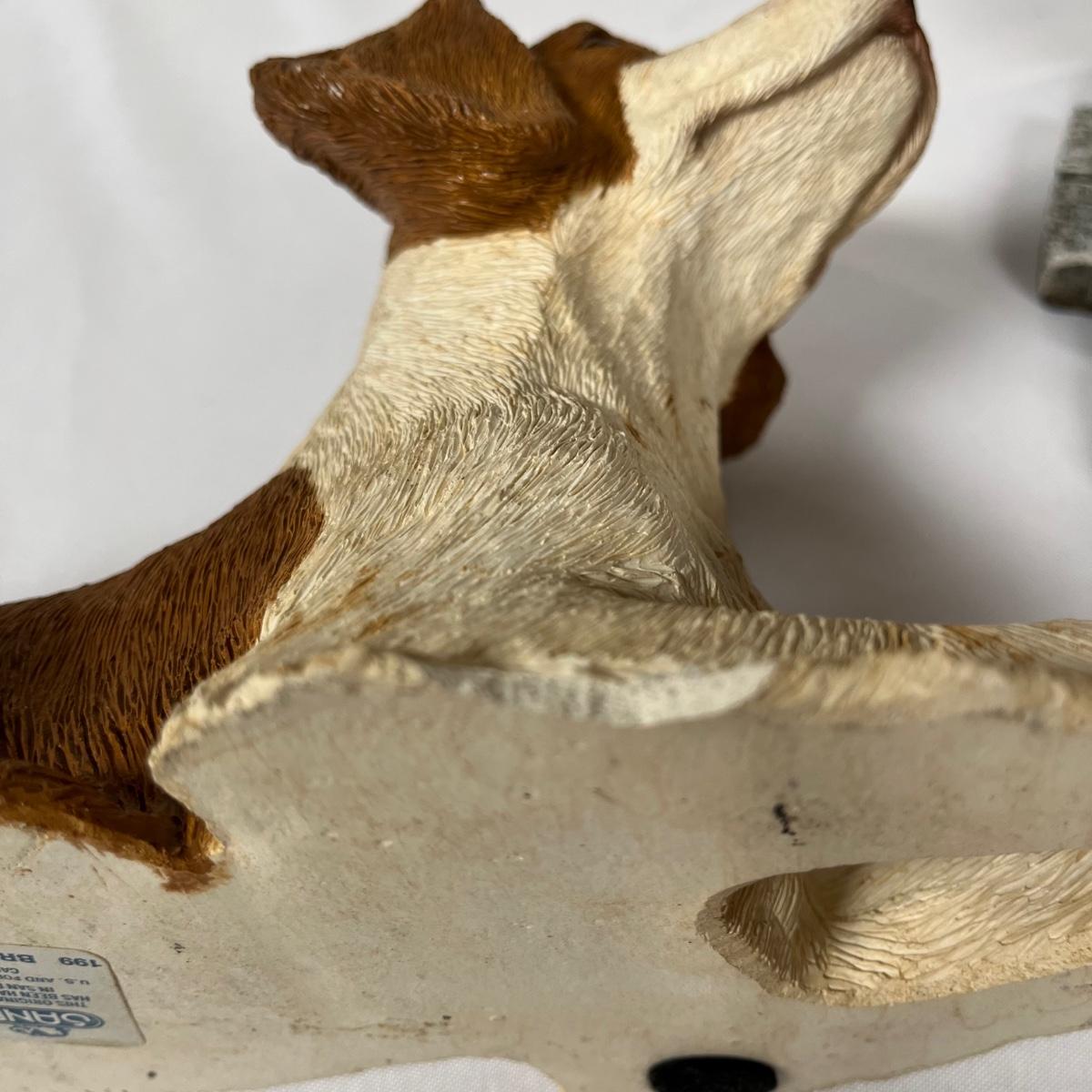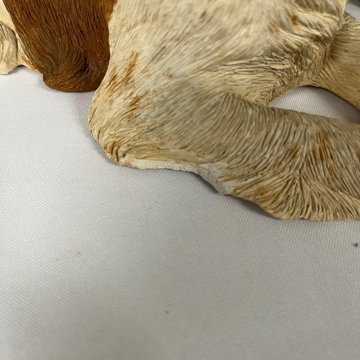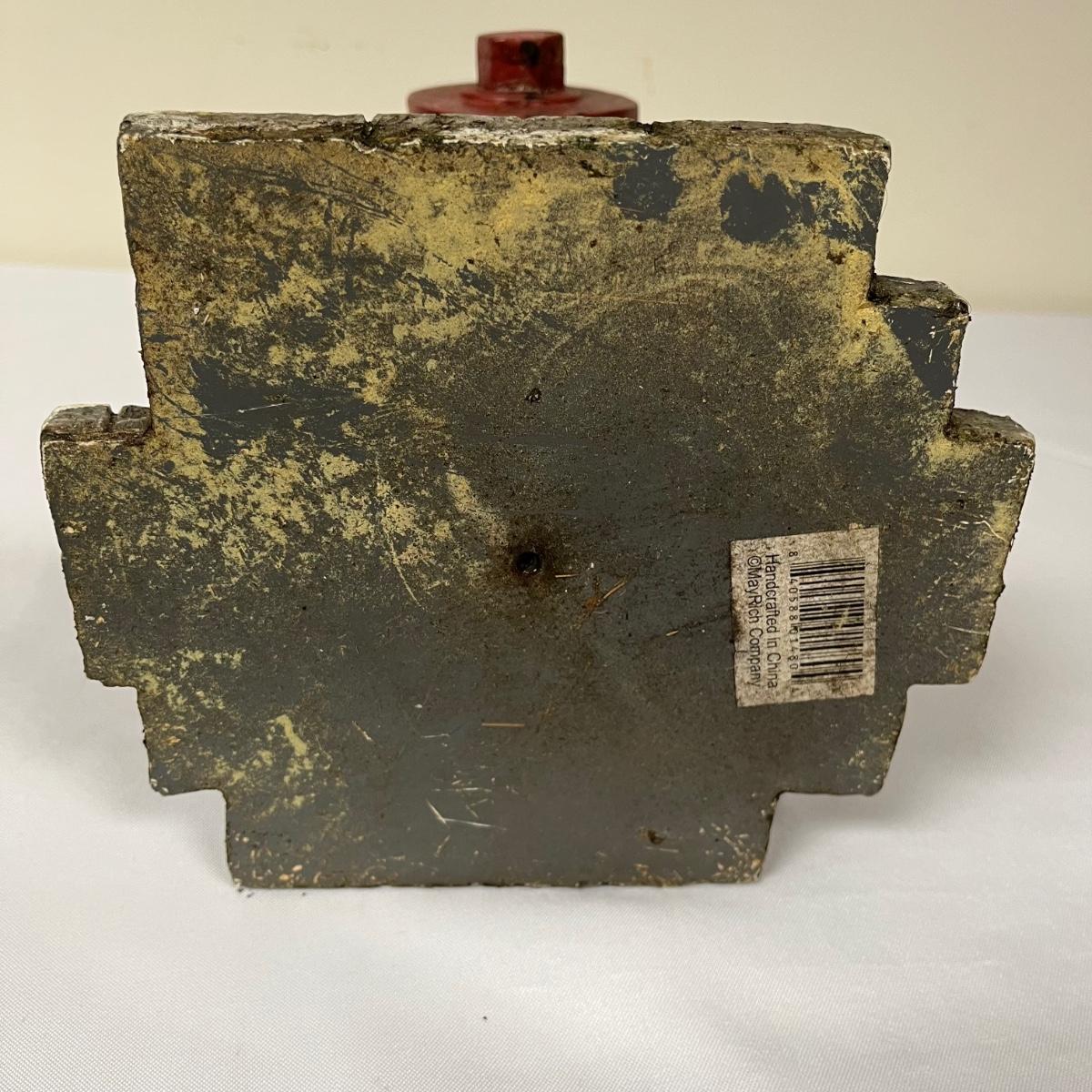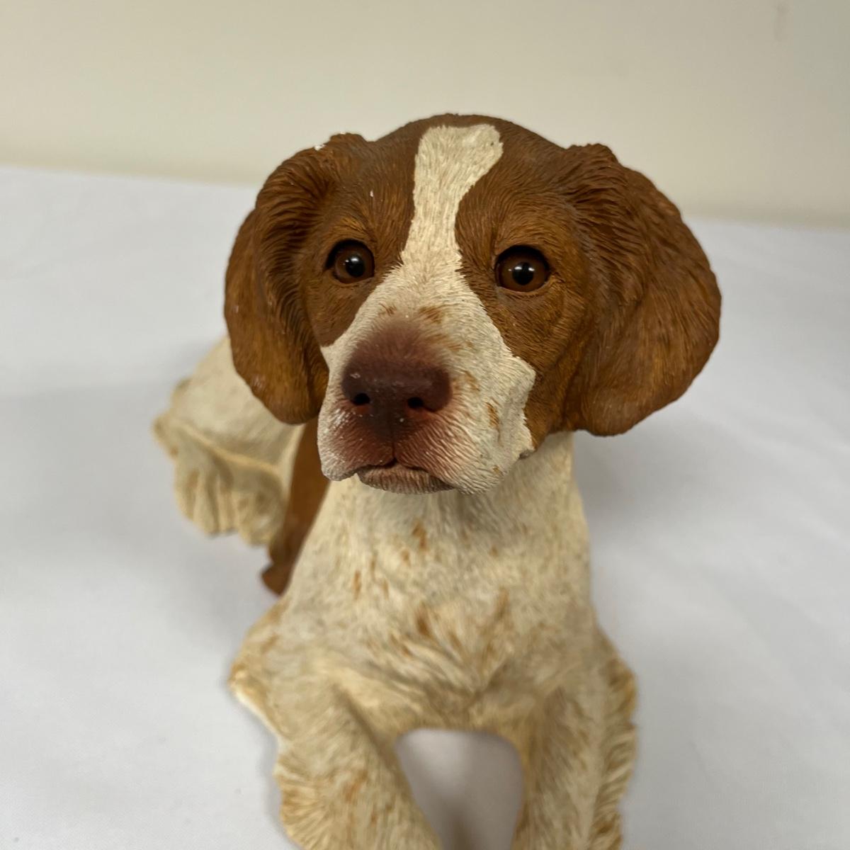 Lot includes a Handcrafted and hand painted Sandicast dog and a resin fire hydrant. Dog has initials etched on back. Dog has a chip on leg (see pictures) and measures 5” x 11” x 6.5”. The fire hydrant measures approximately 7.5” x 6.5” x 13.5”.