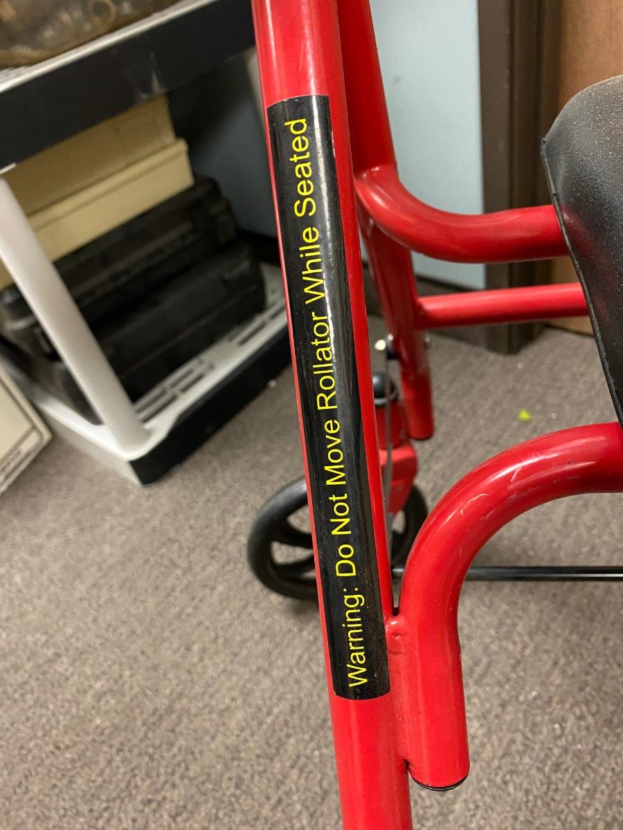 Bright Red Wheeled Mobility Walker with Seat and Hand Brakes