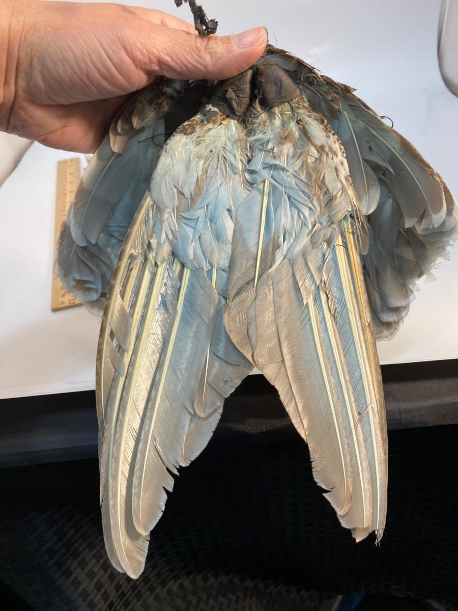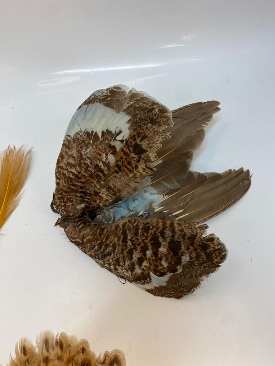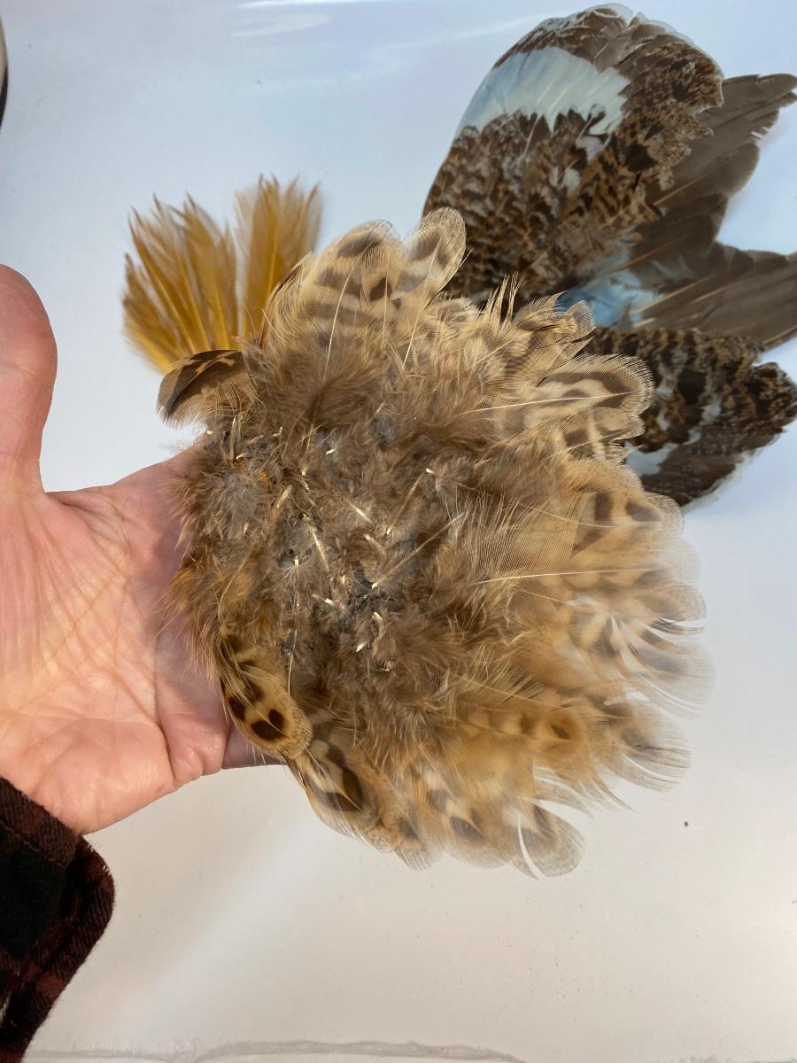 Beige Natural Tone Bird Feather Lot for Crafting and Fashion. One set has wings attached, look like they are from grouse or another small game bird and have been tinted blue.