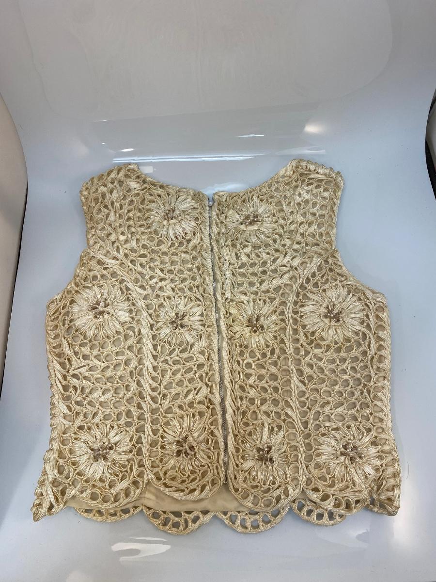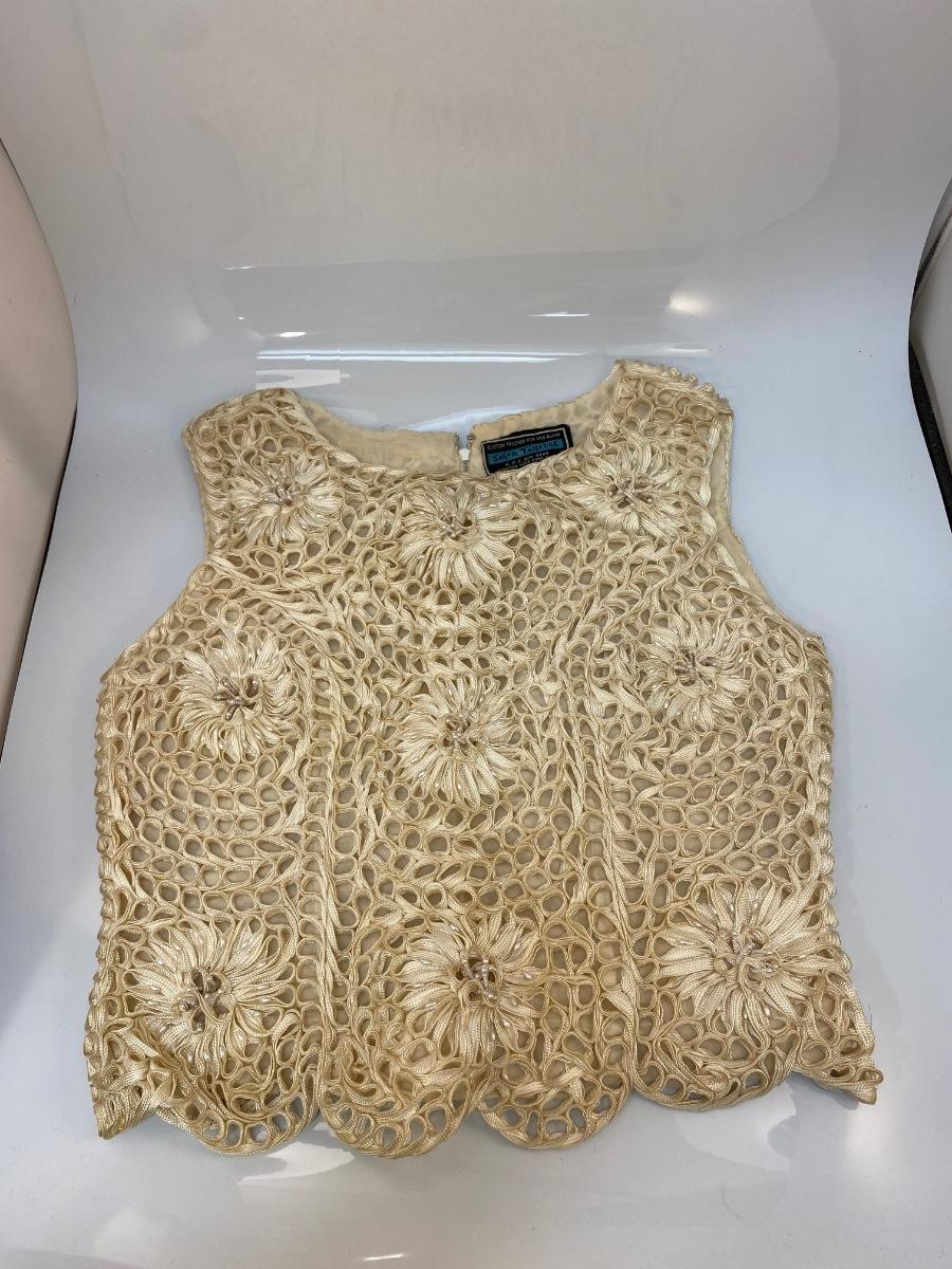 Vintage Retro Sarani Tailleur Hong Kong Heavy Lace Fabric Tank Top Zipper Vest