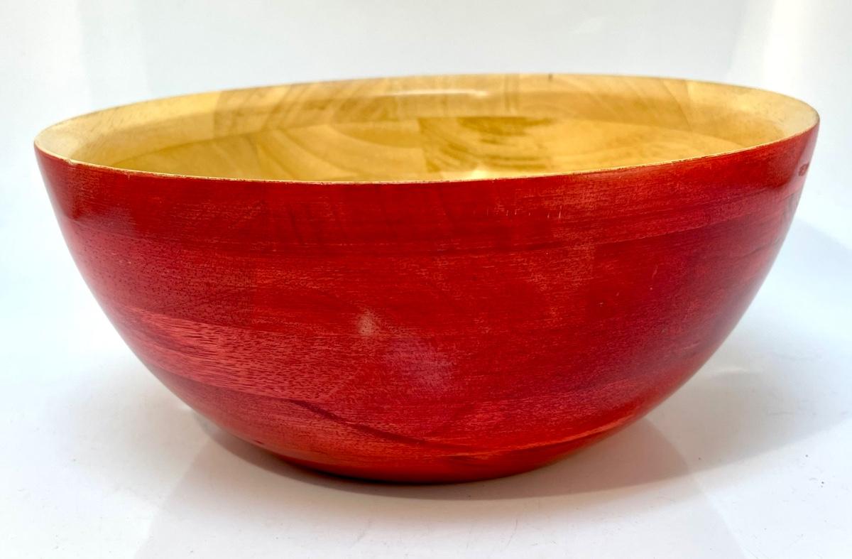 Red Painted Dyed Wood Fruit Serving Console Bowl. In good used condition. May have light signs of use.