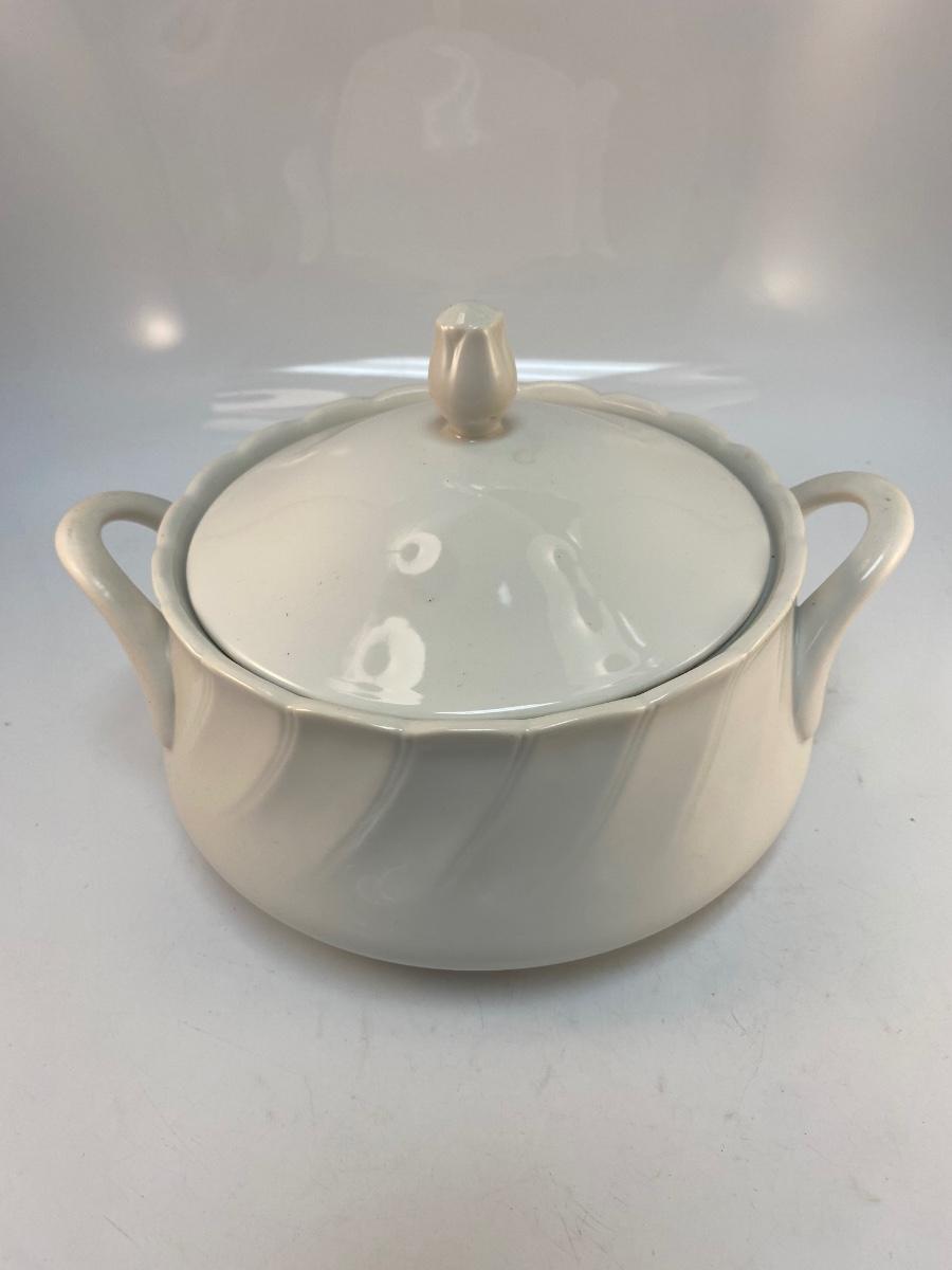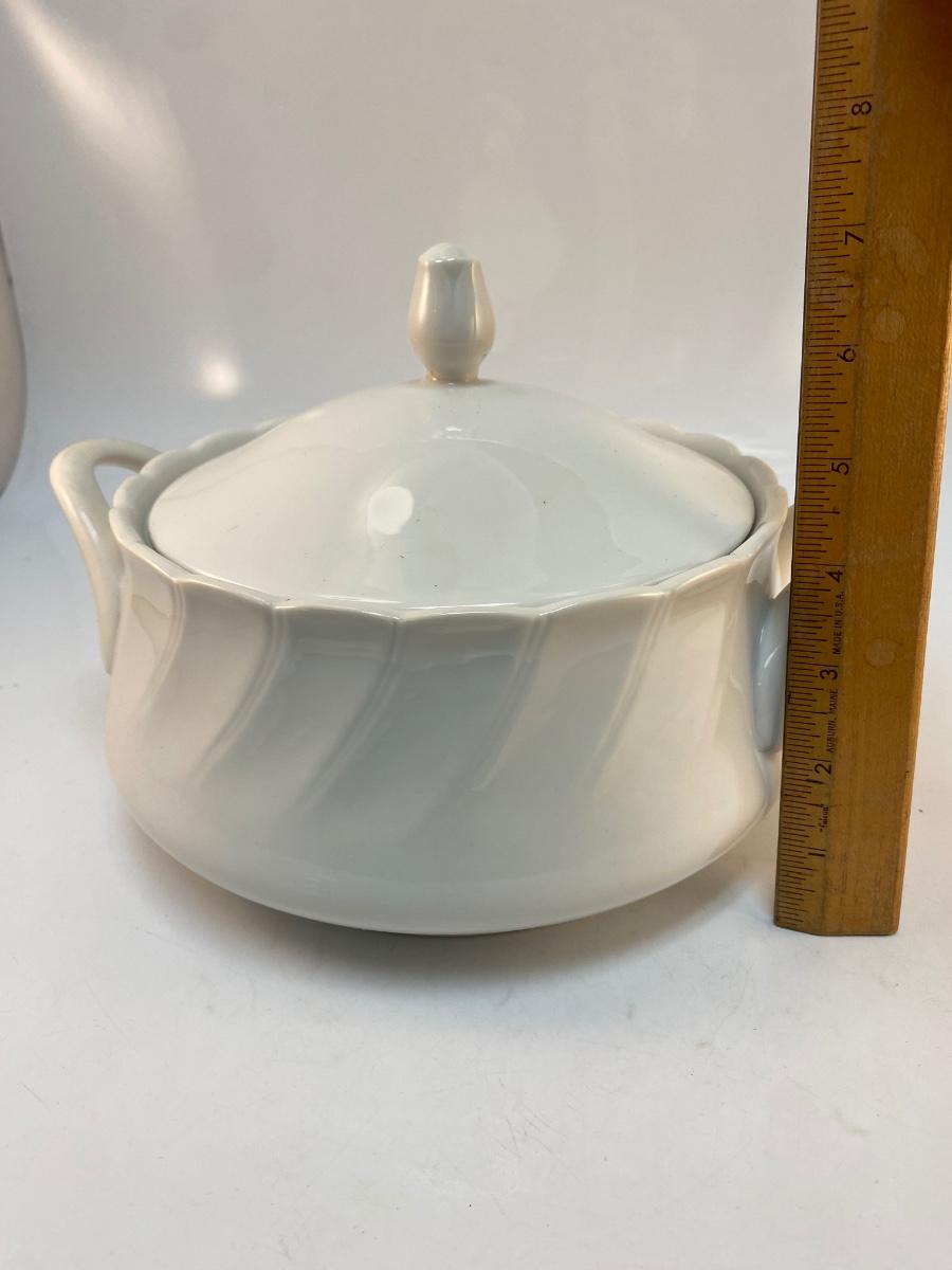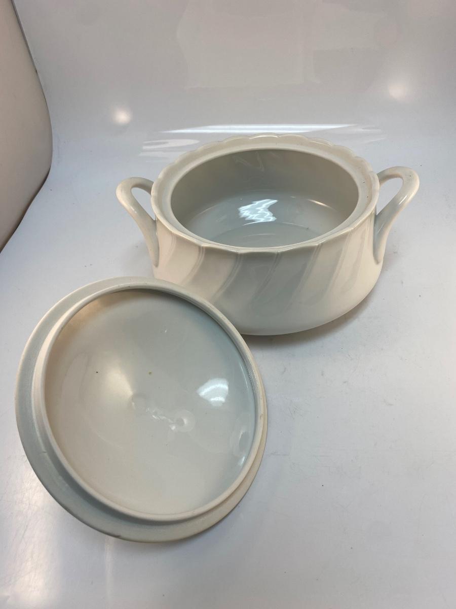 Porcelain White Swirled Lidded Double Handle Casserole Soup Tureen Yorkshire Japan