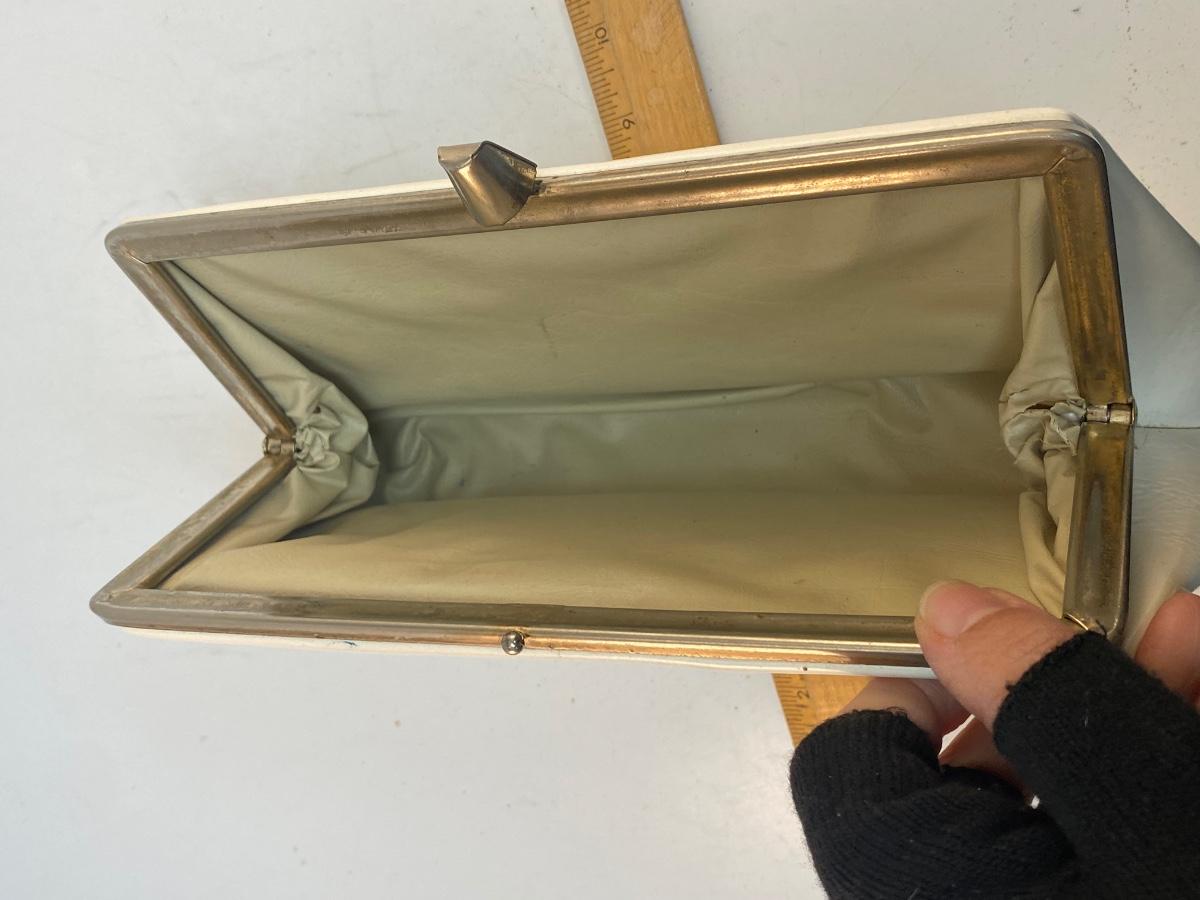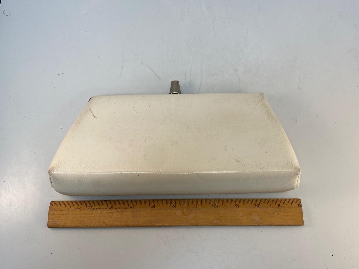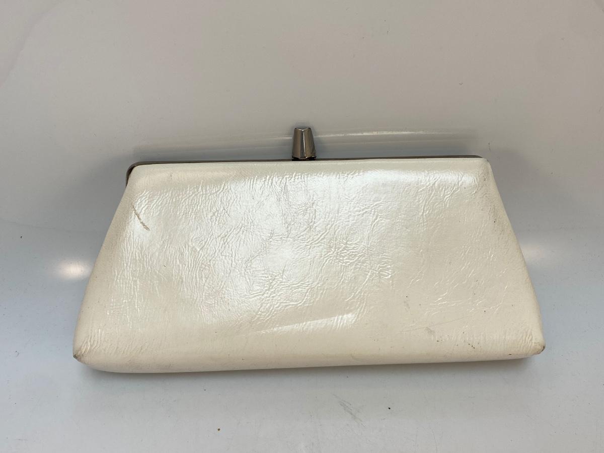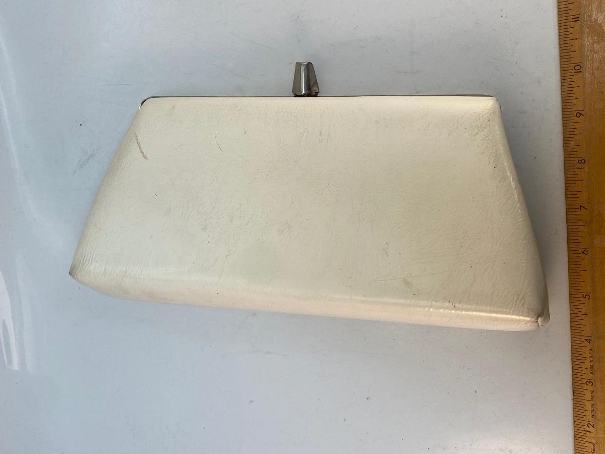 Vintage White Leather Handbag Clutch. Some light scuffs and signs of use. About 12" size.