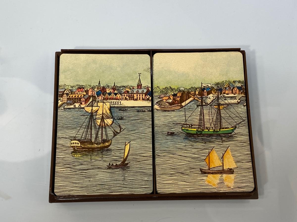 Vintage Sets of Playing Cards Nautical Ships Fournier Spain Velveteen Box Unopened