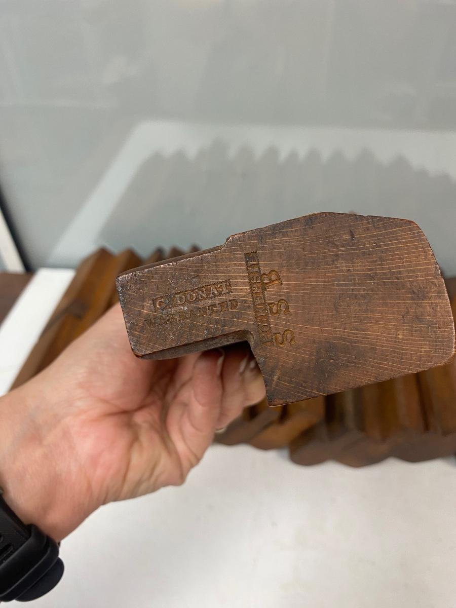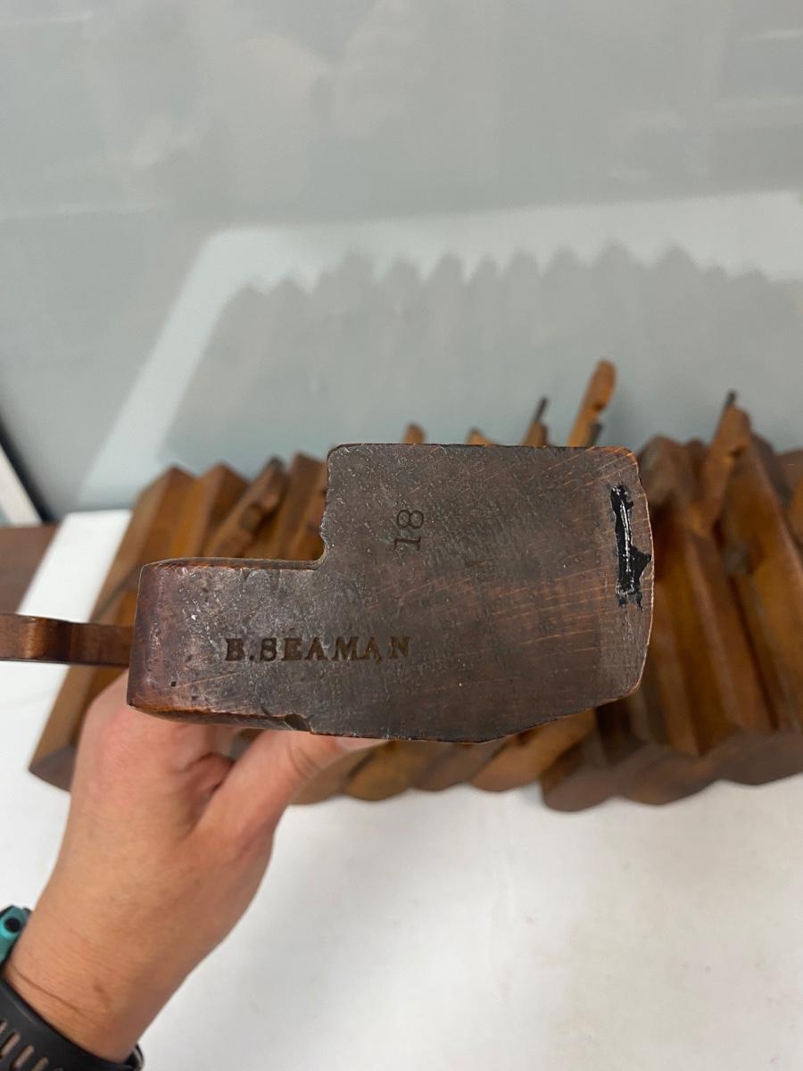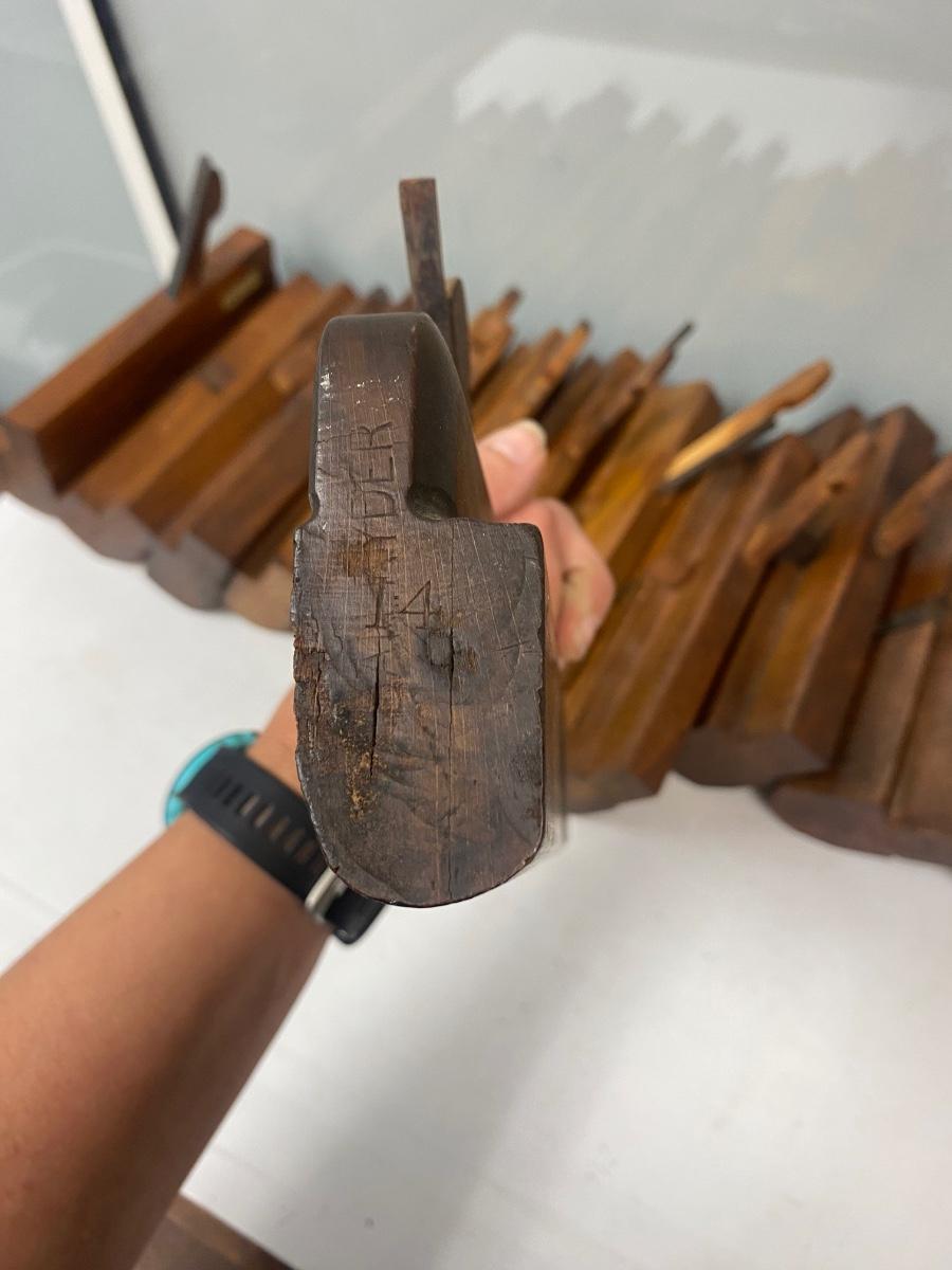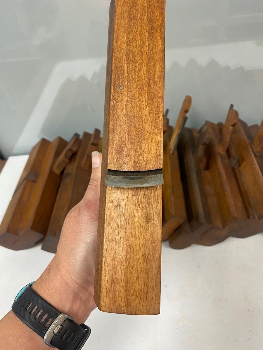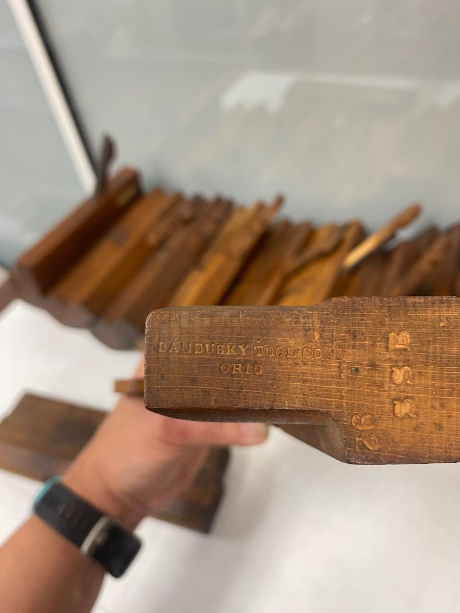 Lot of 12 Wooden Moulding Trim Planes Curved Blade Woodworking Hand Tools. Various sizes, some may be the same. Previous owner/maker and size may be stamped in the end.