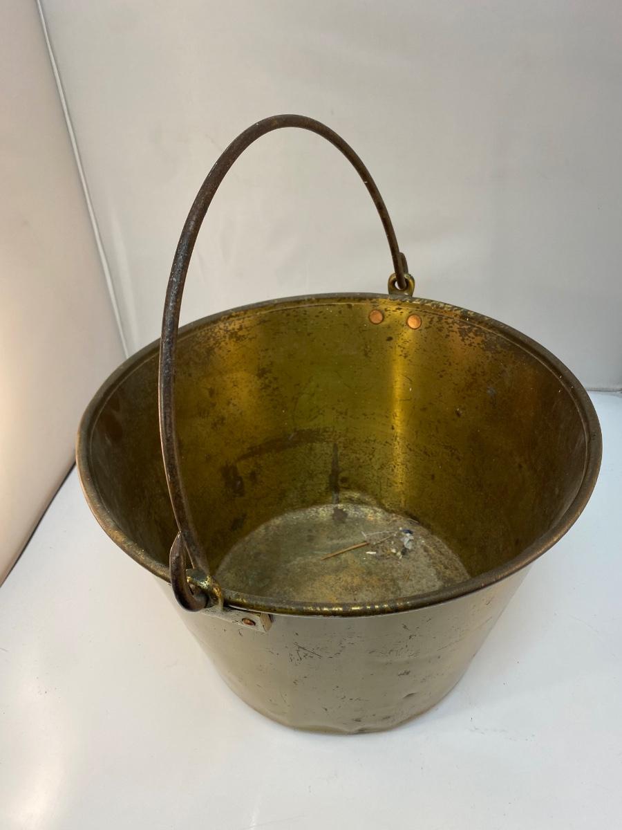 Vintage Heavy Brass Fireplace Water Cooking Kettle Pail Bucket