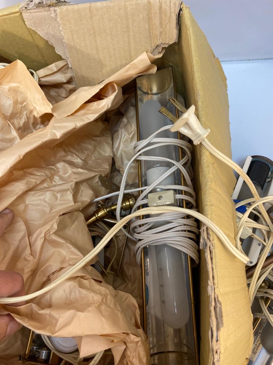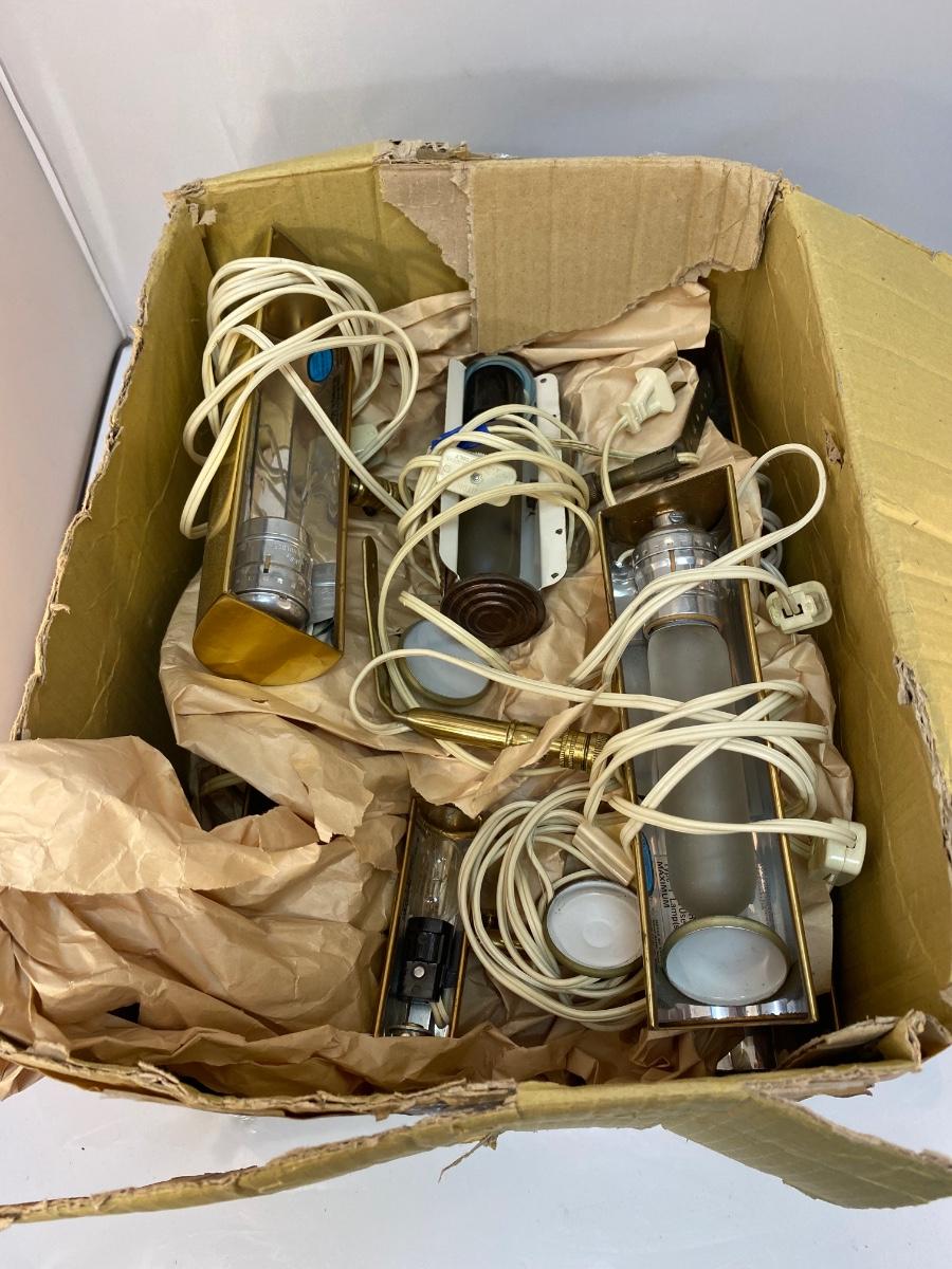 Box of Art Display Accent Lights About 12 Different Sizes & Finishes. Sizes vary. Untested.