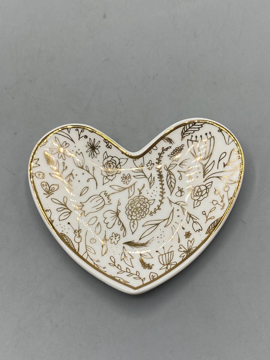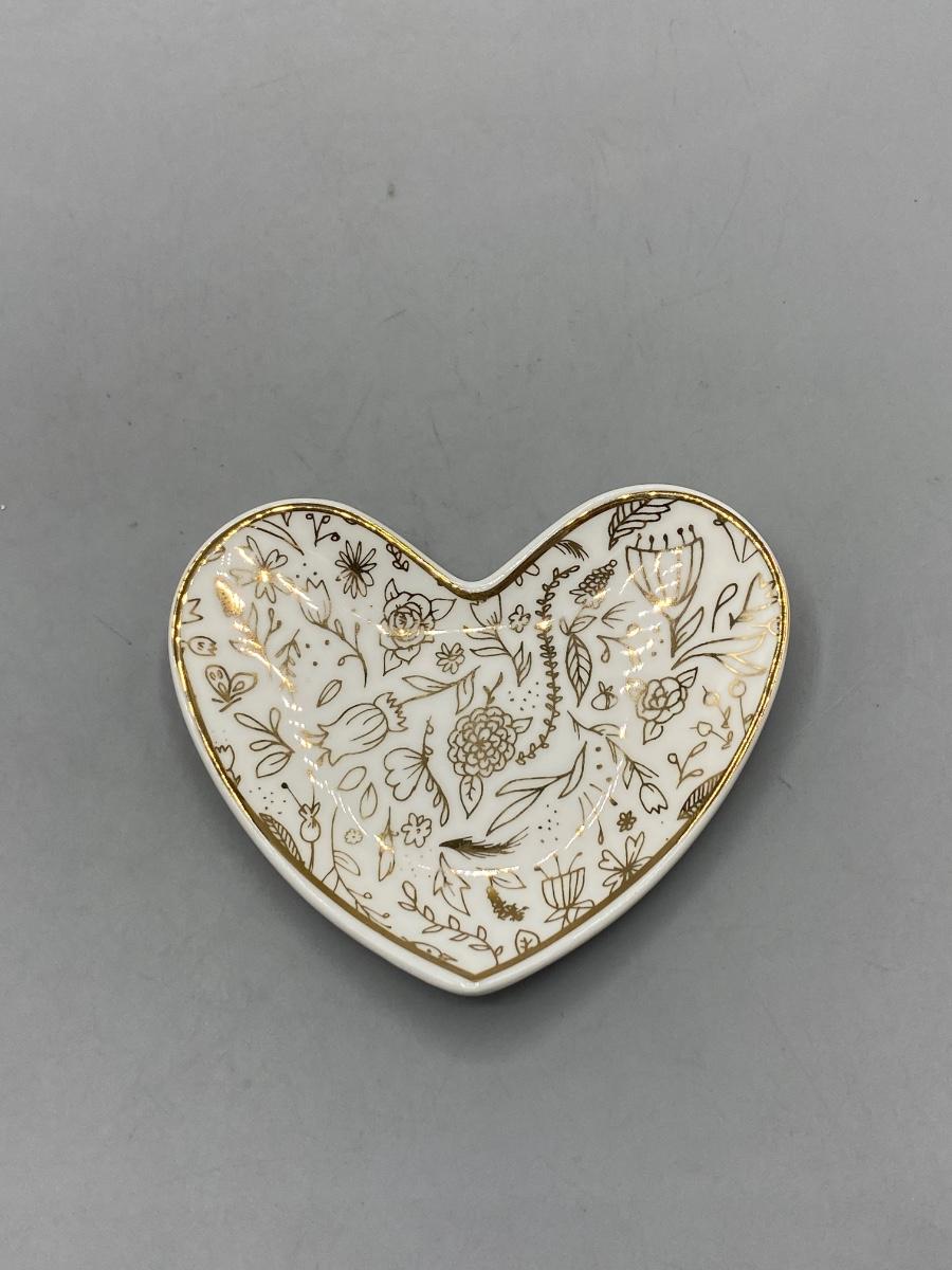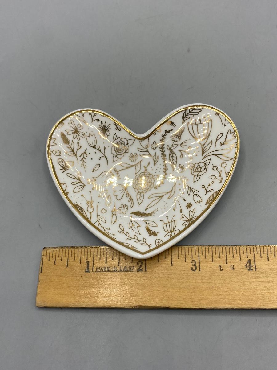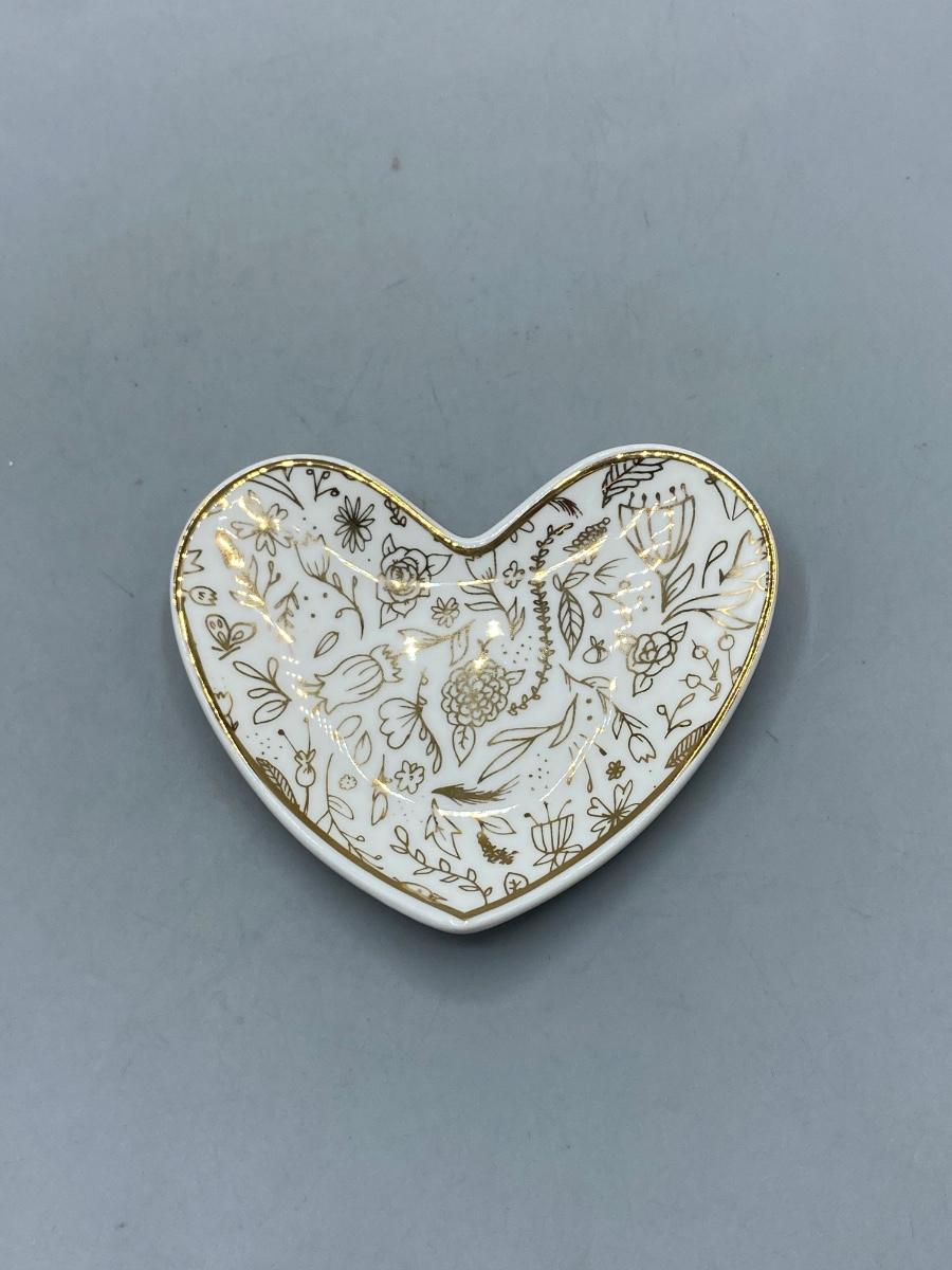 Small White Porcelain Ceramic Heart Dish with Gold Design Rosanna Seattle