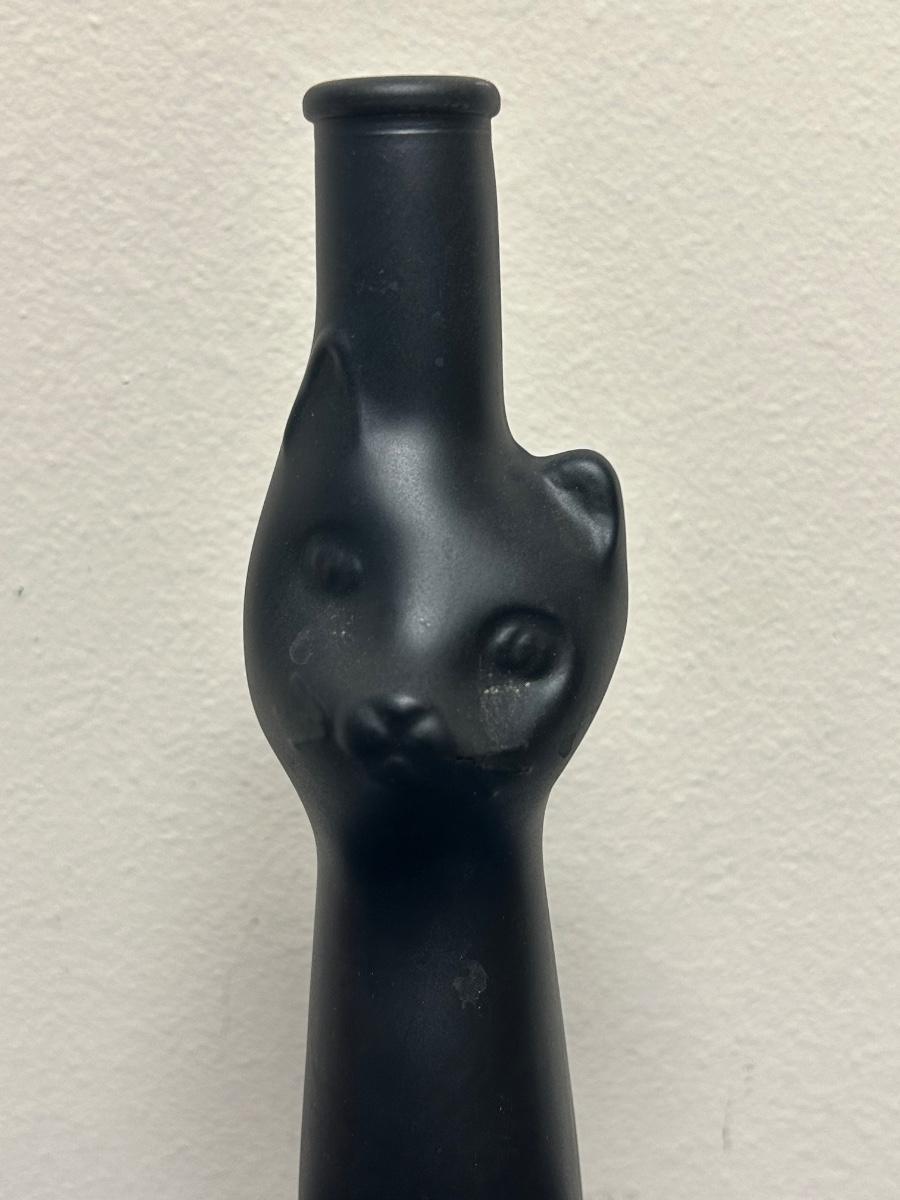 Vintage Retro Mosel Saar Ruwer Riesling Black Satin Glass Cat Shaped Wine Bottle