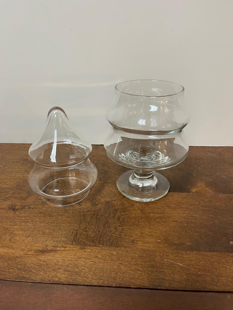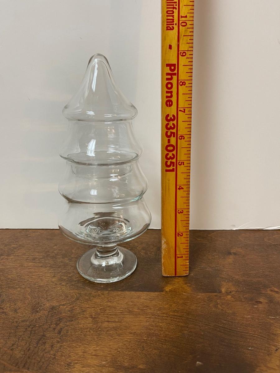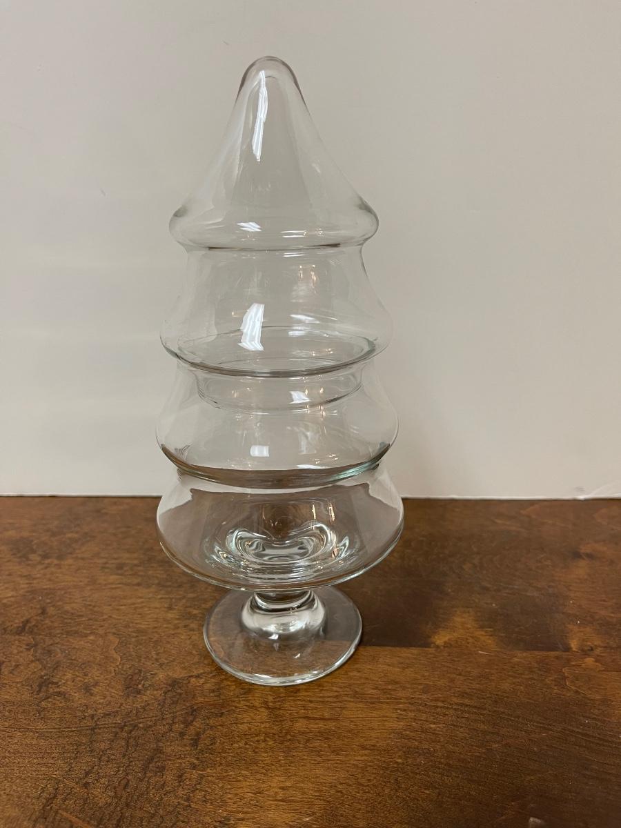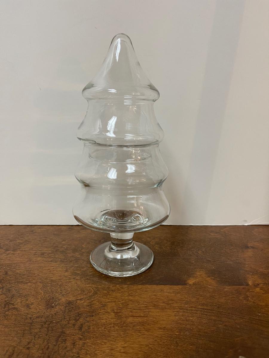 Clear Glass Christmas Tree Shaped Candy Dish Apothecary Jar. In good condition.