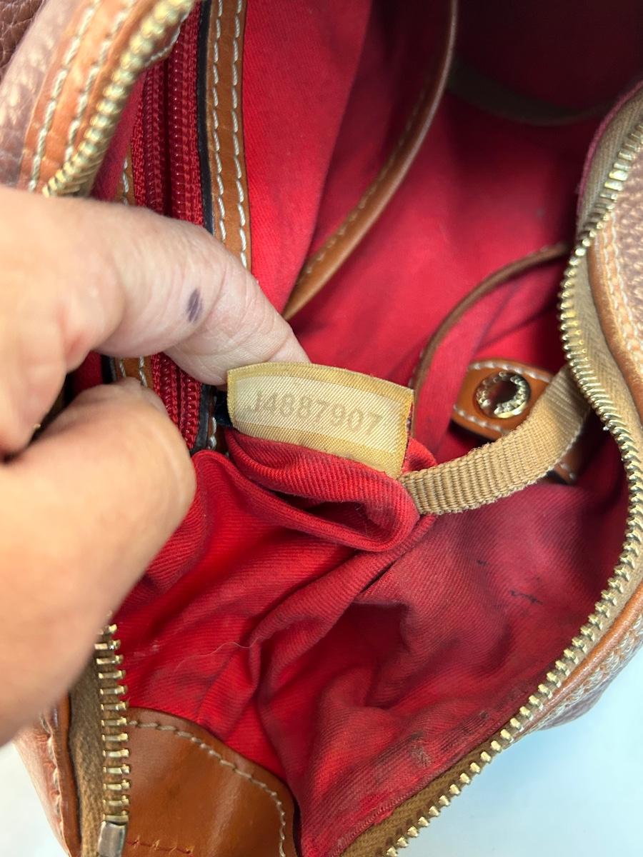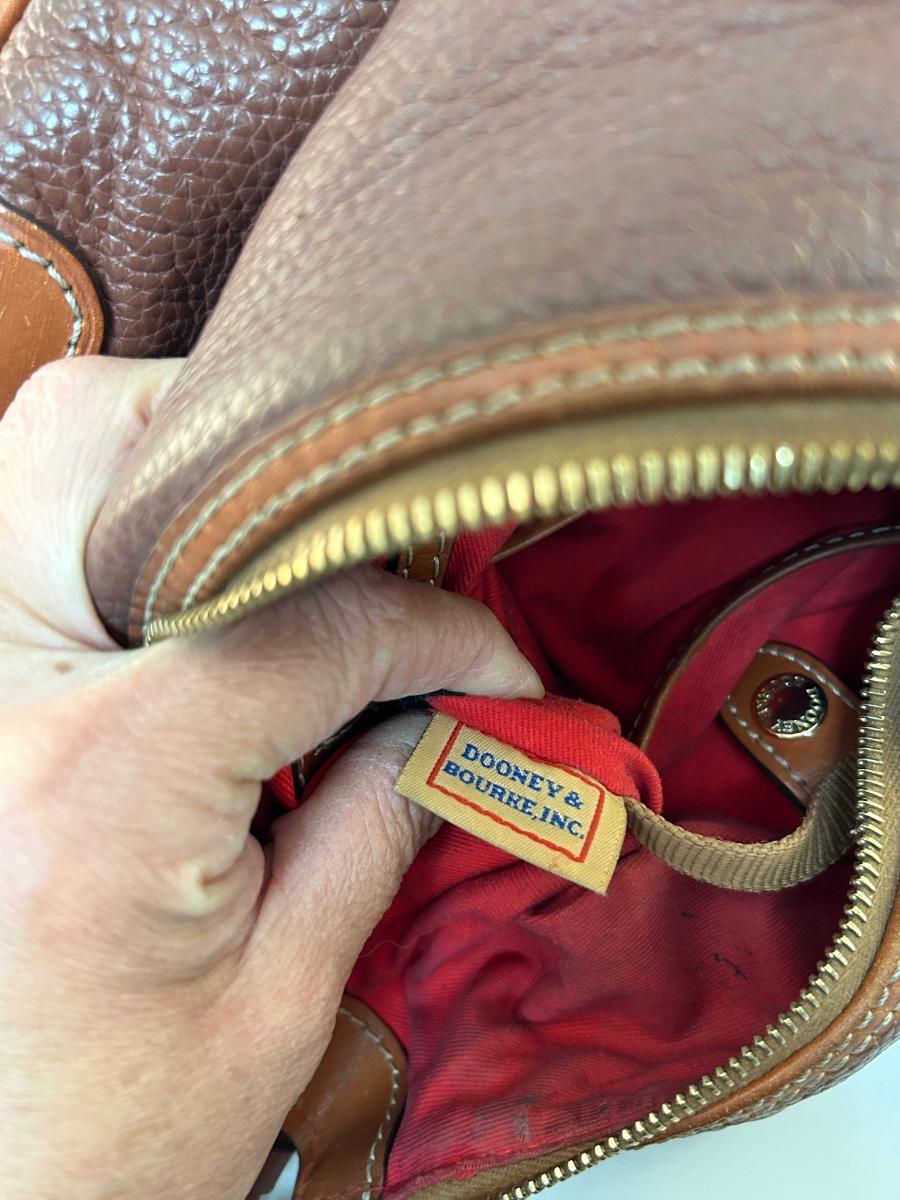 Dooney & Bourke Brown Tan Leather Handbag Shoulder Bag Purse. In previously used condition. The outside is in good condition, inside shows use.