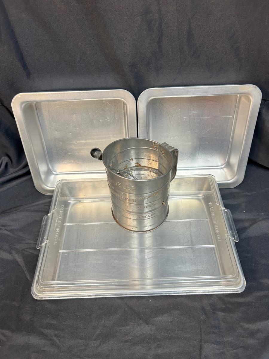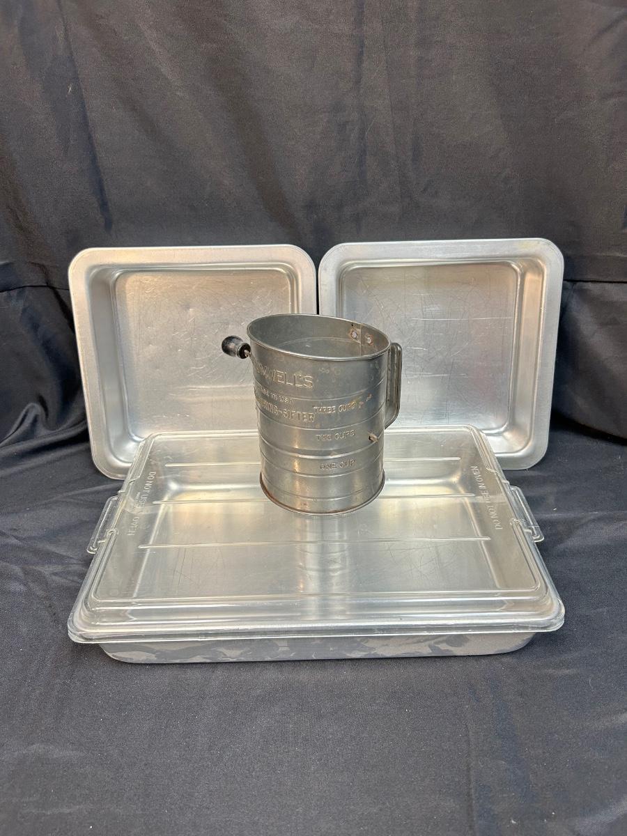 Vintage Aluminum Bakeware Cake Pans and Sifter