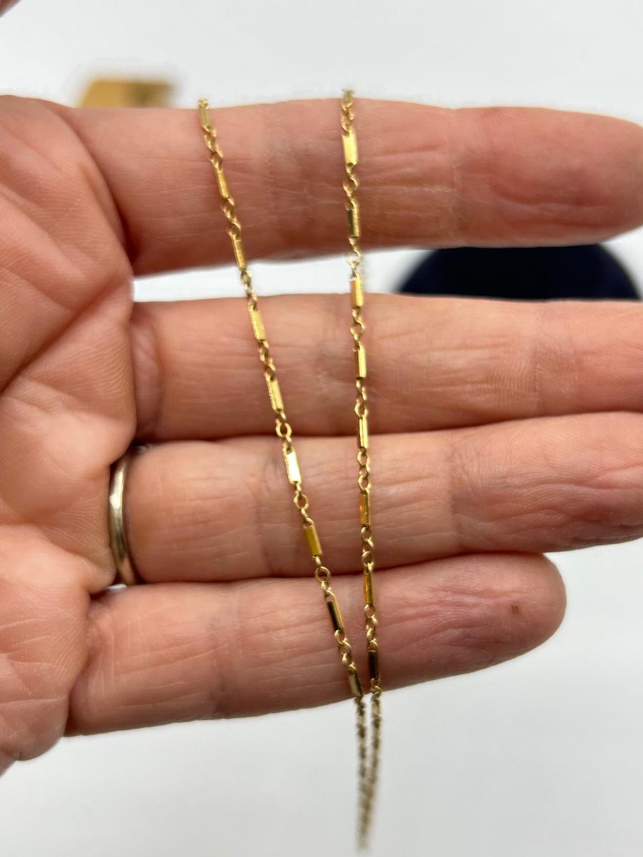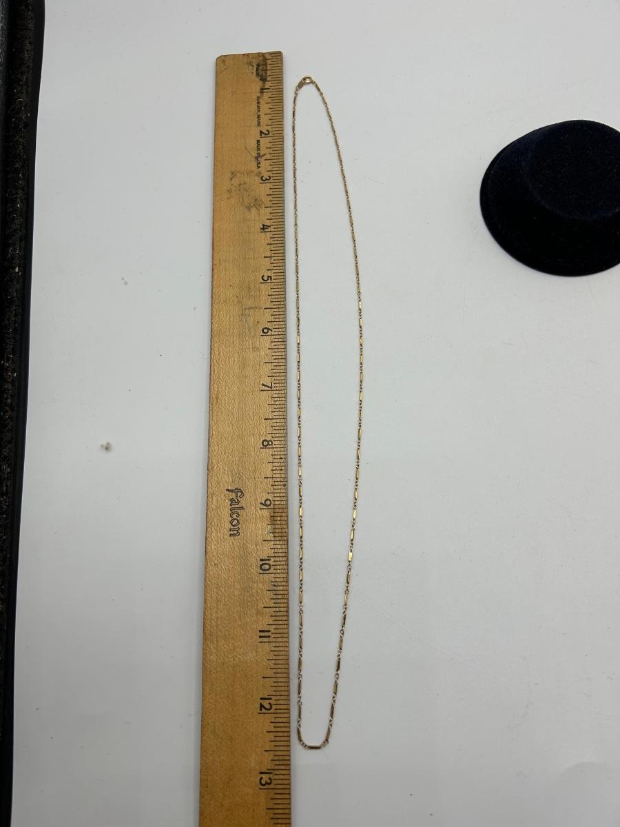 Fine Link 14k Yellow Gold Chain Necklace. In good condition. Marked at the clasp end. About 12" length.