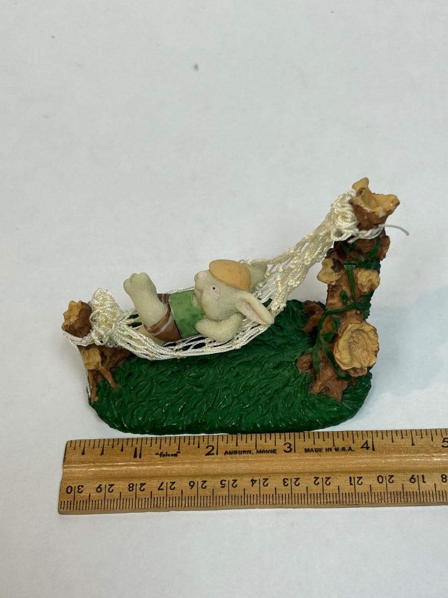 Cute Hammocking Lounging Easter Bunny Rabbit Resin Figurine. In good condition. No chips found. 4" size.