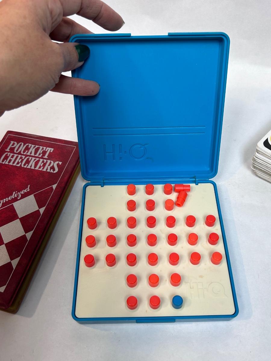 Vintage Retro Travel Pocket Checkers Hi-Q and UNO Card Game