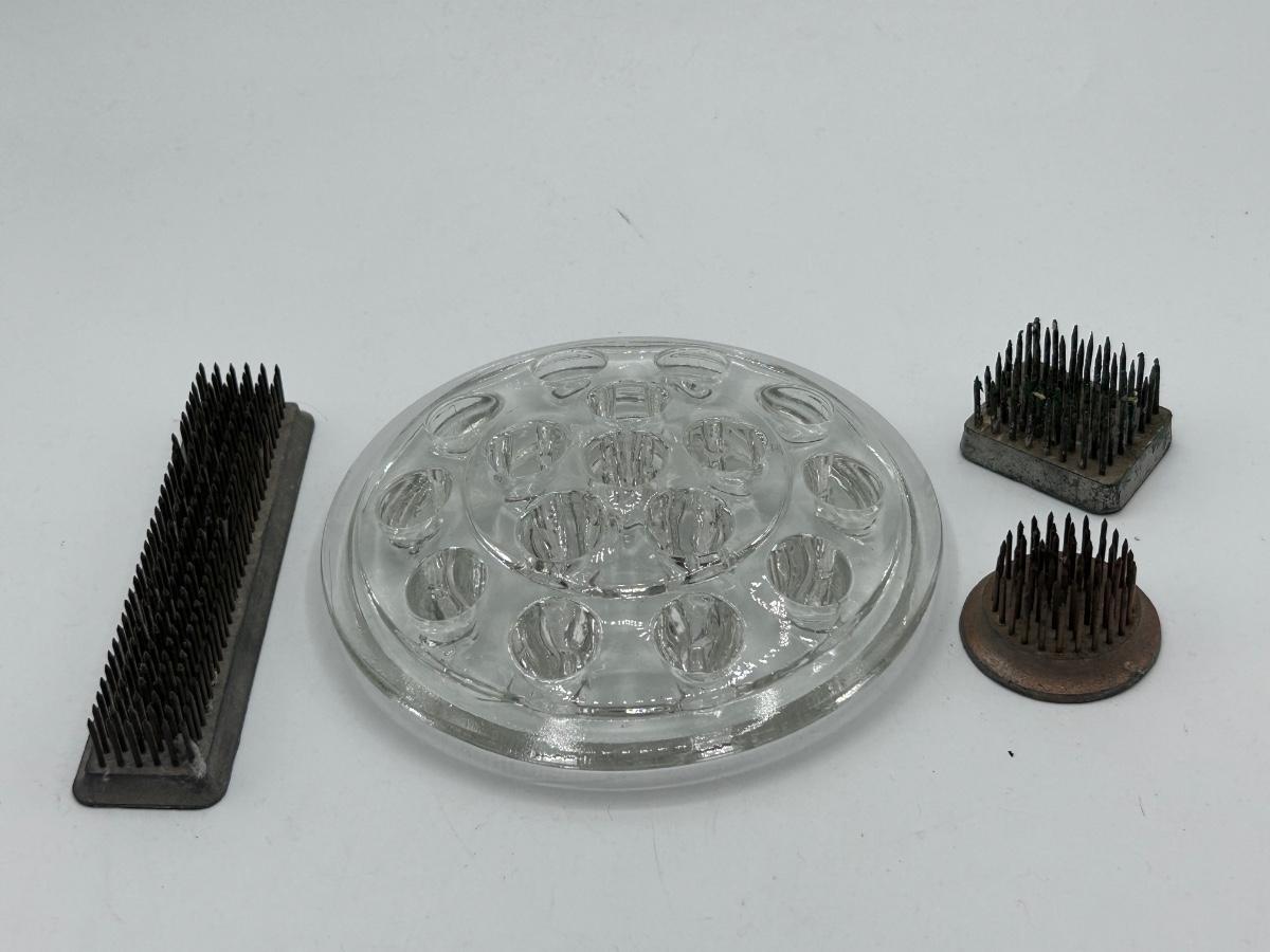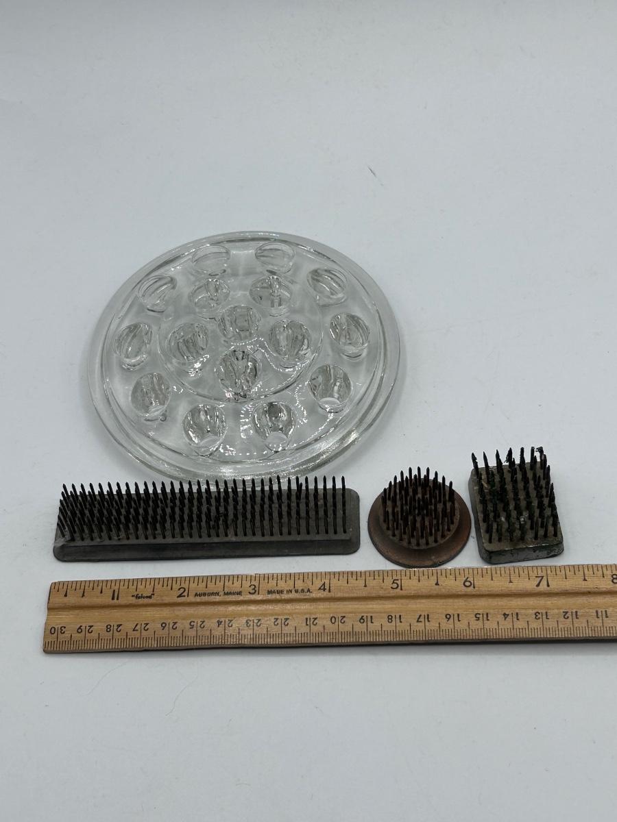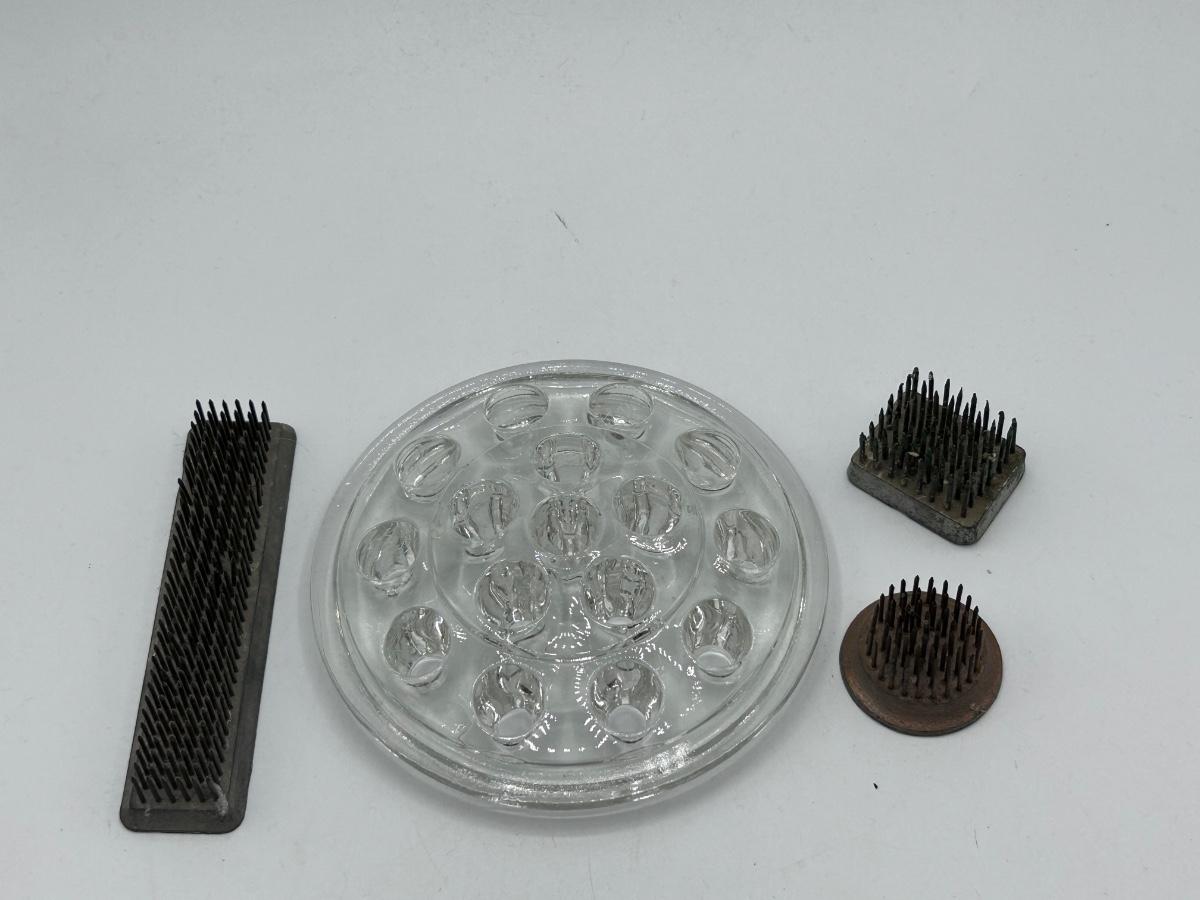 Set of Four Floral Flower Arrangement Frogs Glass & Metal