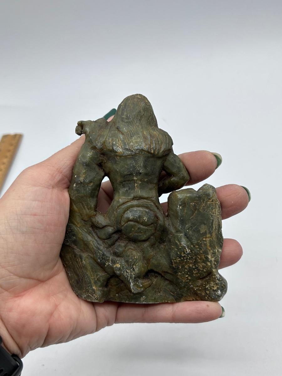 Vintage Miniature Statue  Hand Carved Stone Person Kneeling with Instrument