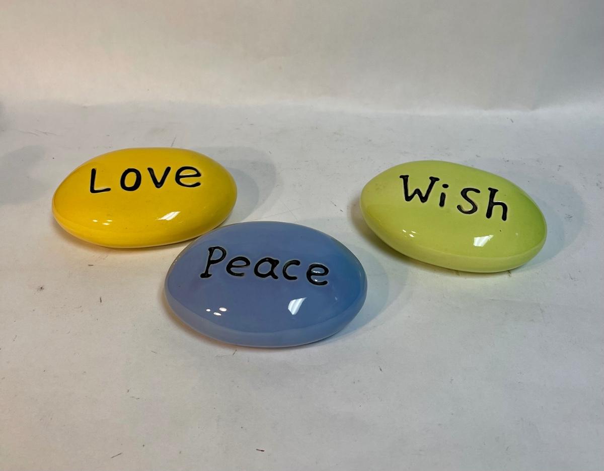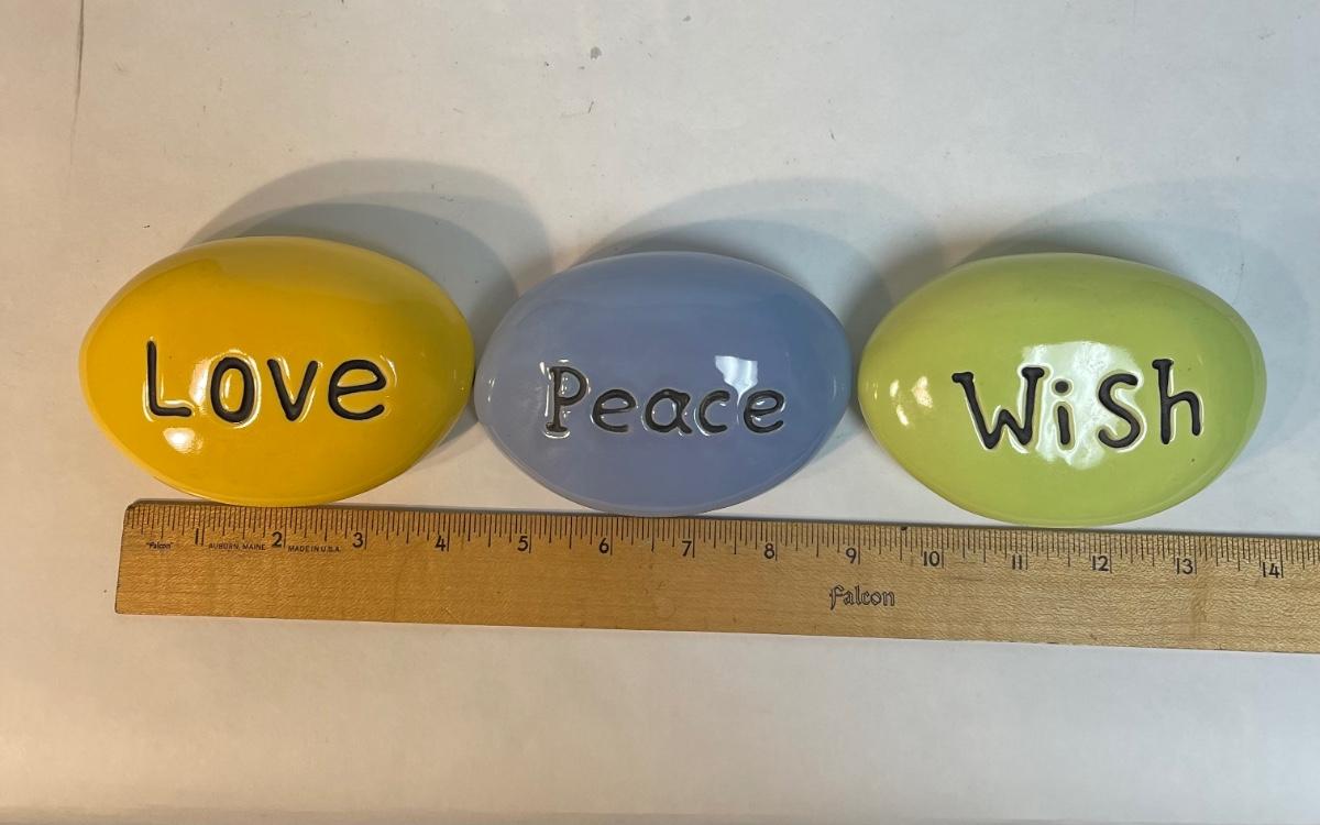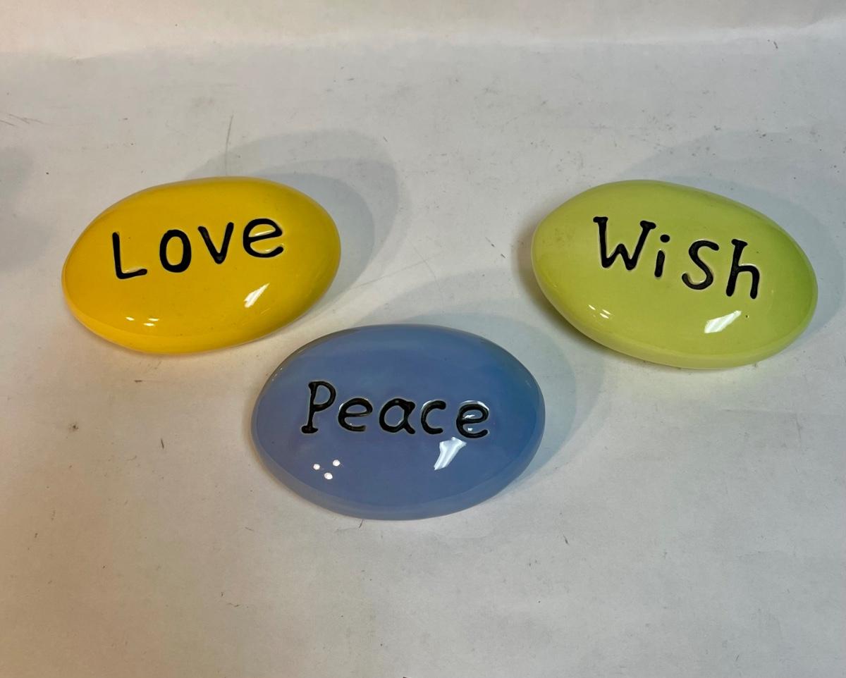 Ceramic Pebbles with Affirming Messages Love Peace Wish
