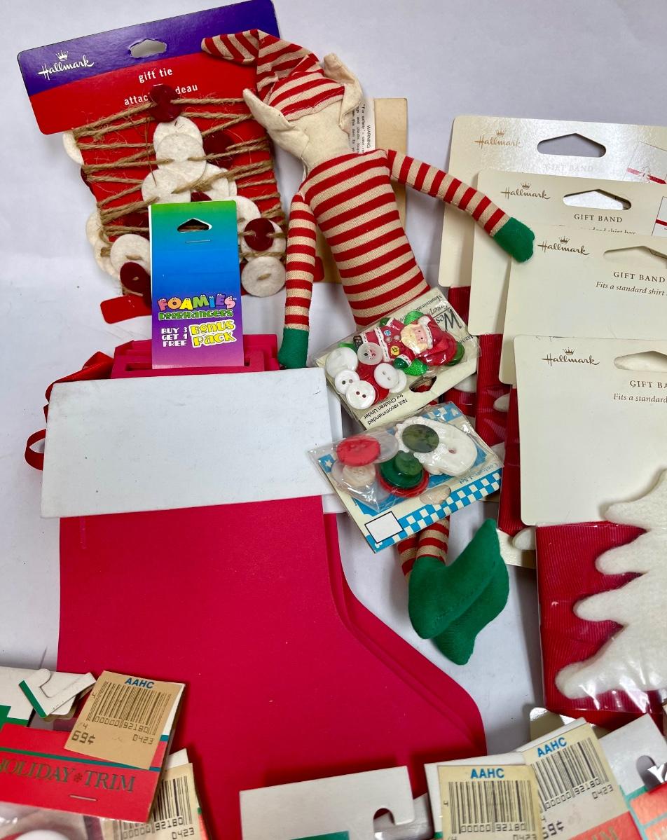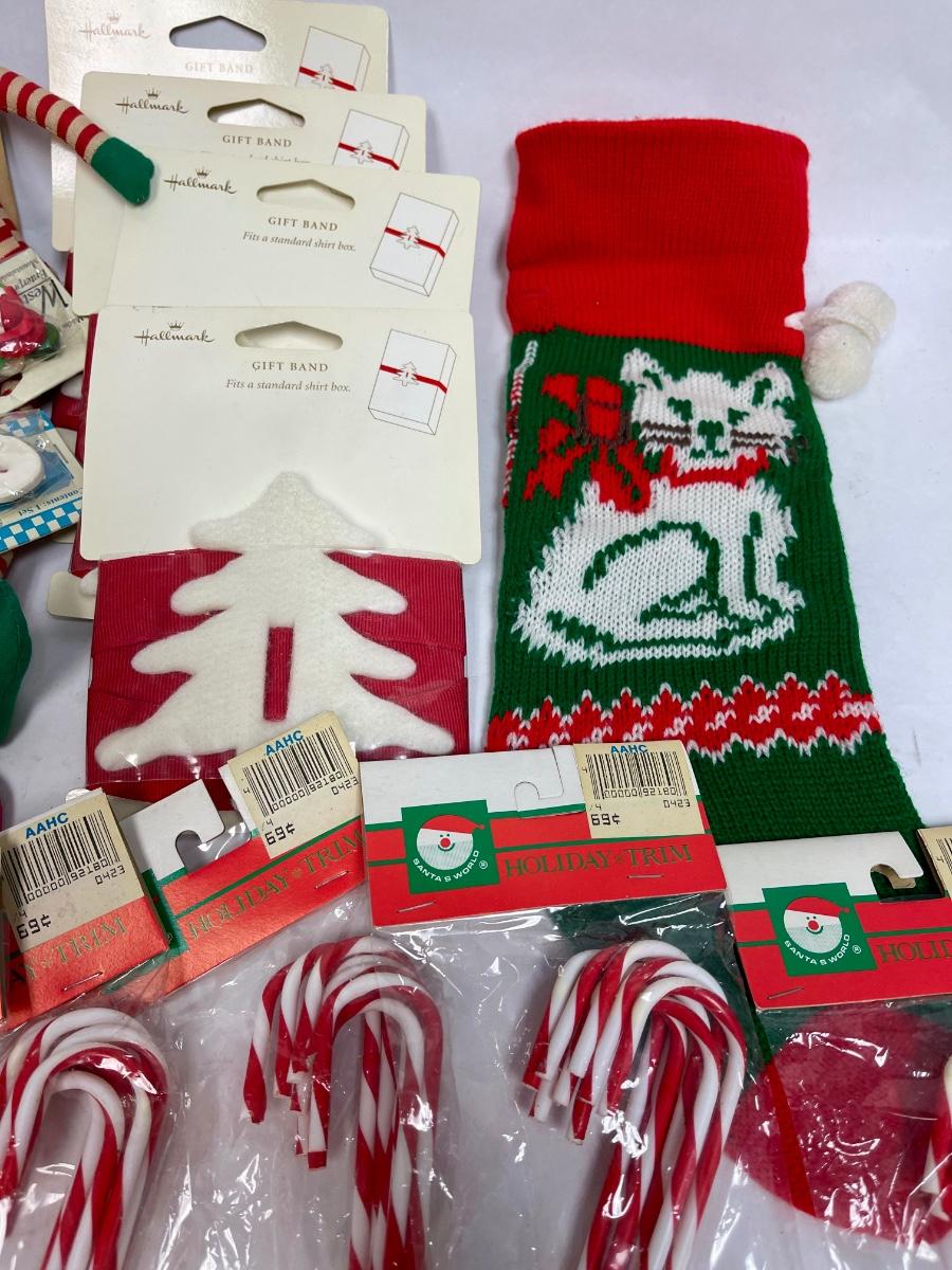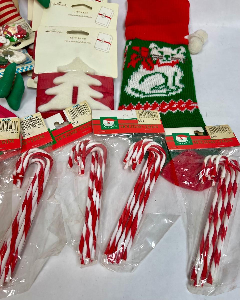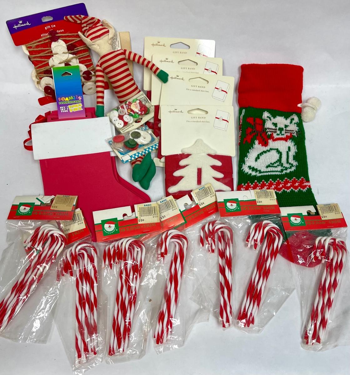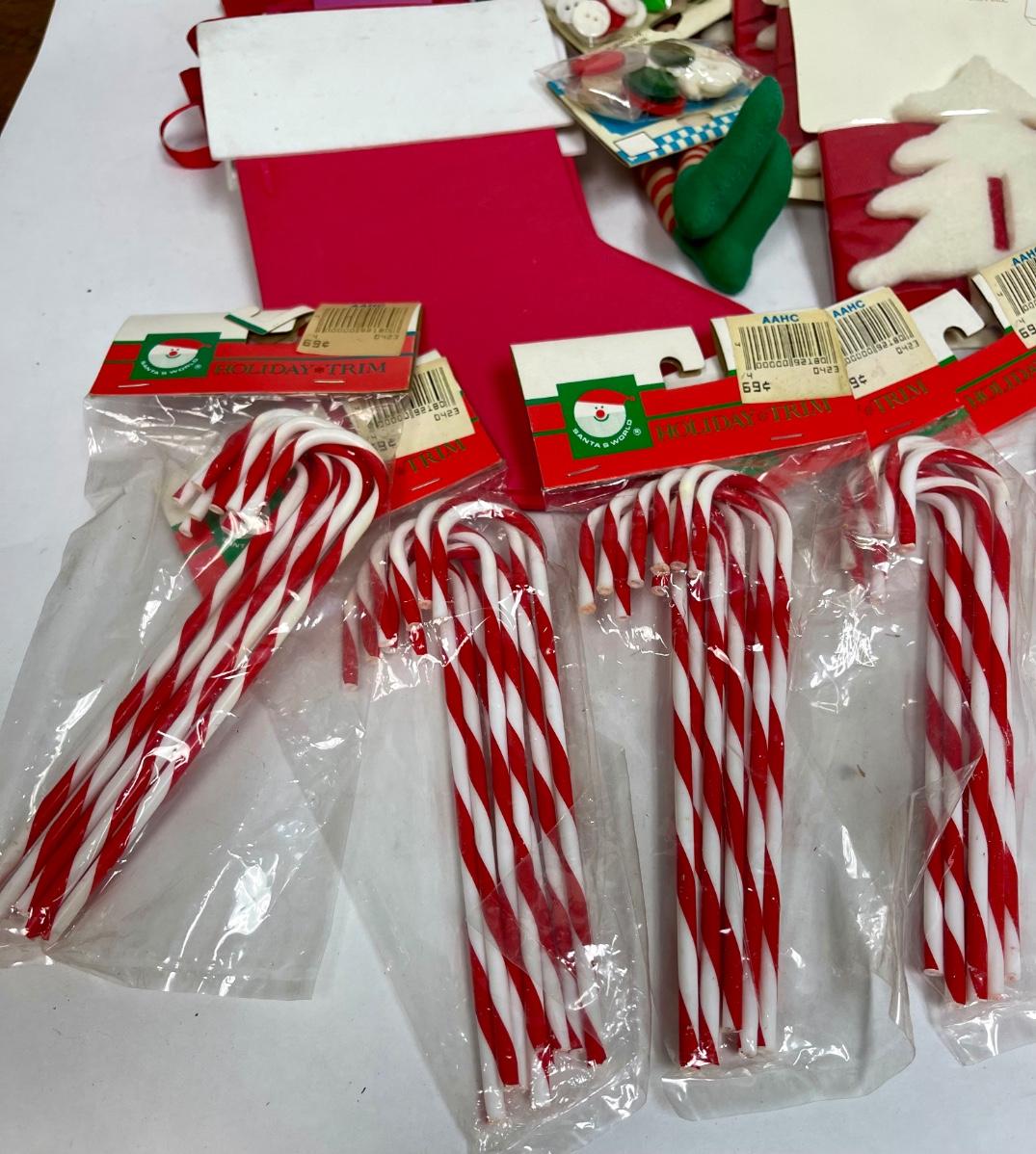 Christmas Decor Lot - candy cane ornaments, sticking, elf, foam stocking cutouts, etc