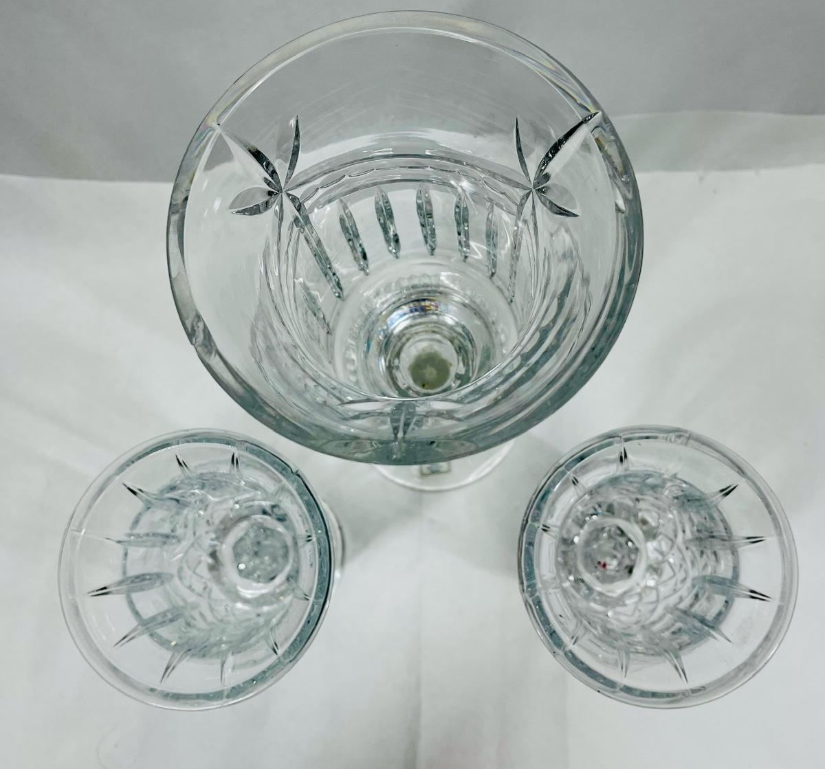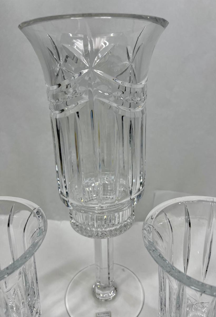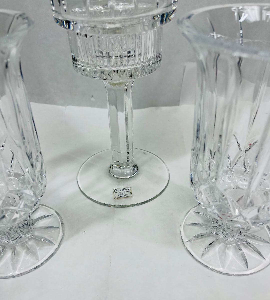 3 glass crystal candle holders. The tall one is made of 2 pieces and is 24% lead crystal, the other two do not have any stickers.