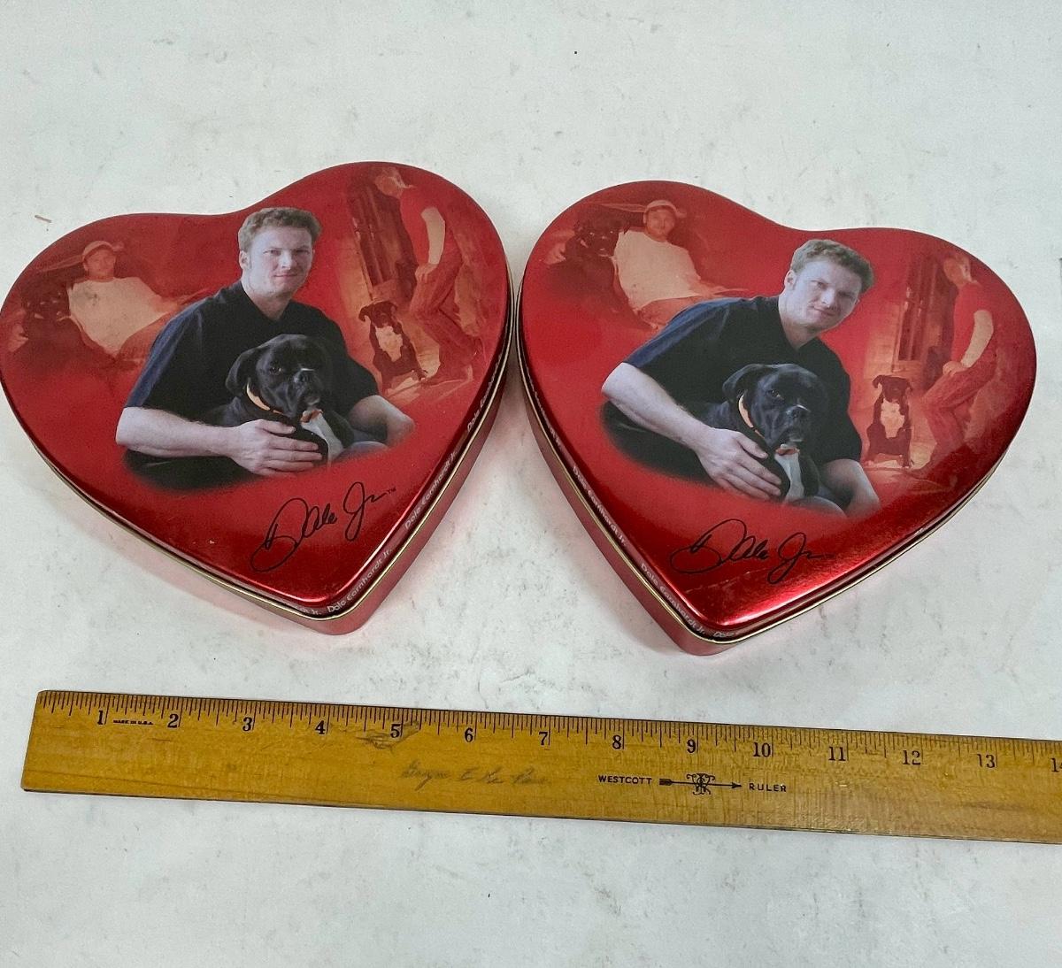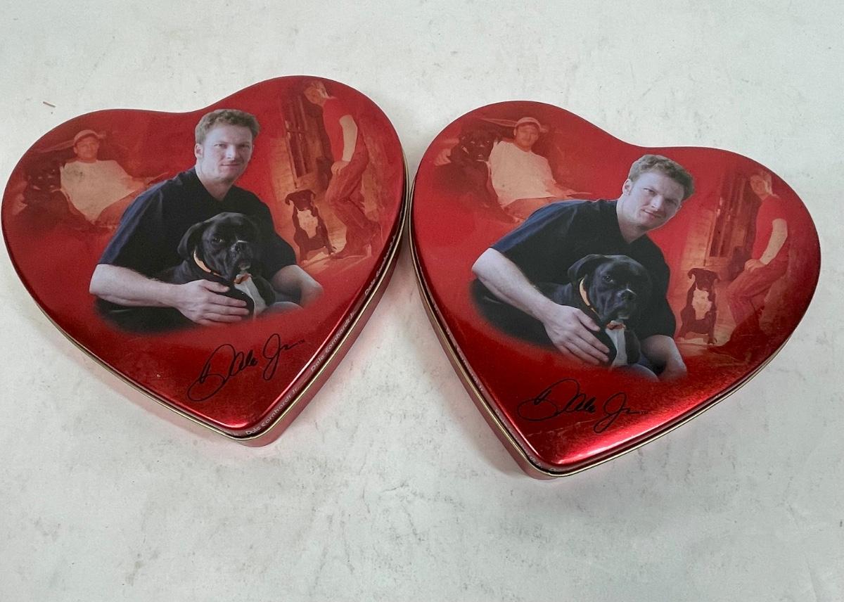 Lot of 2 collectible Dale Earnhardt Jr heart shaped tin, empty box, stash