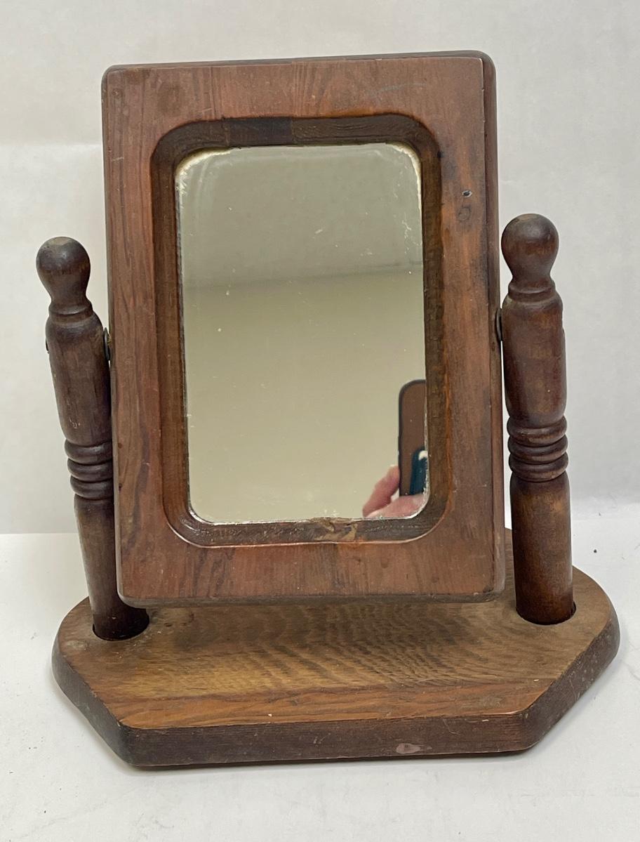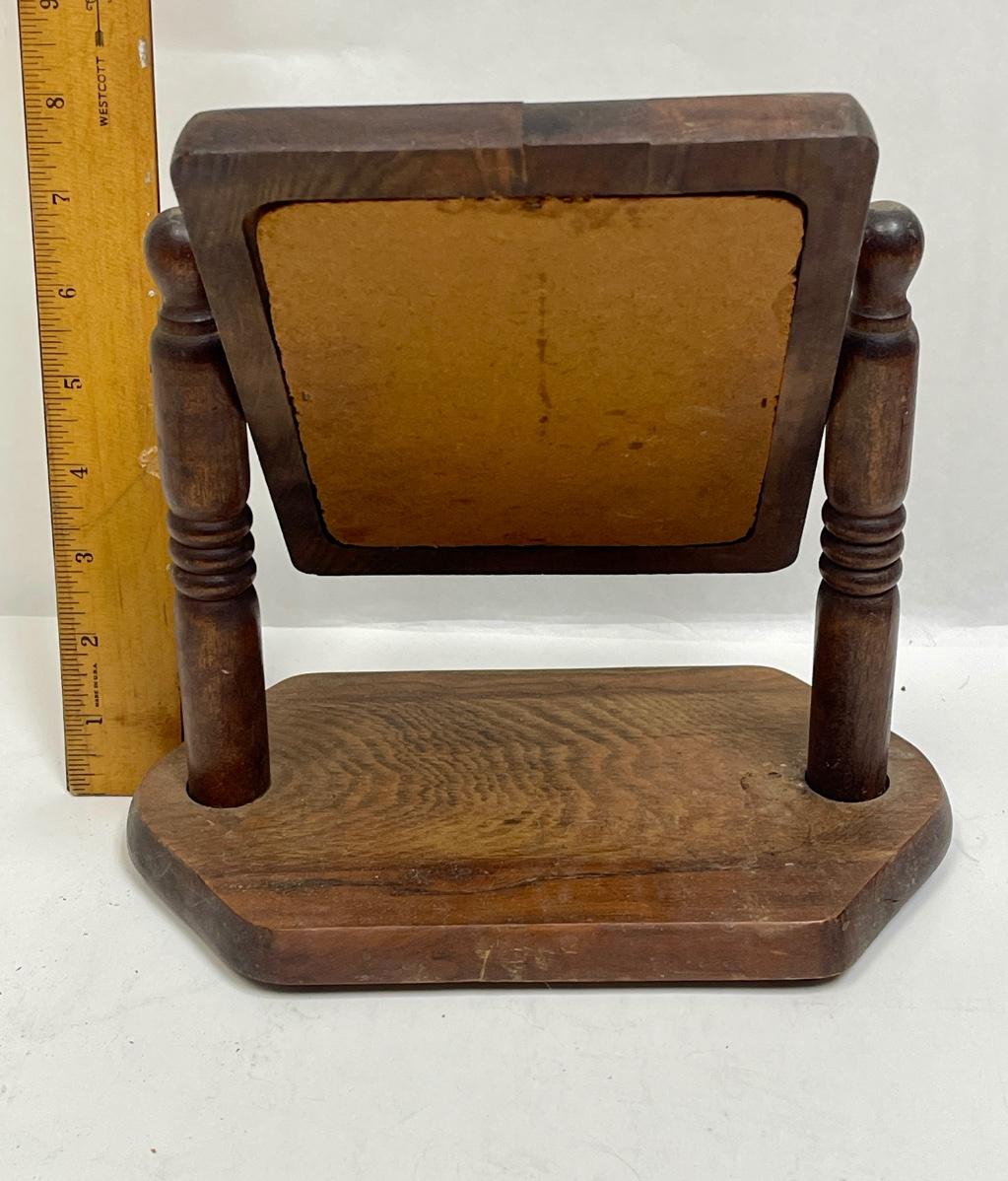 Vintage Wooden Frame Table Top Dresser Vanity Stationary Swivel Mirror